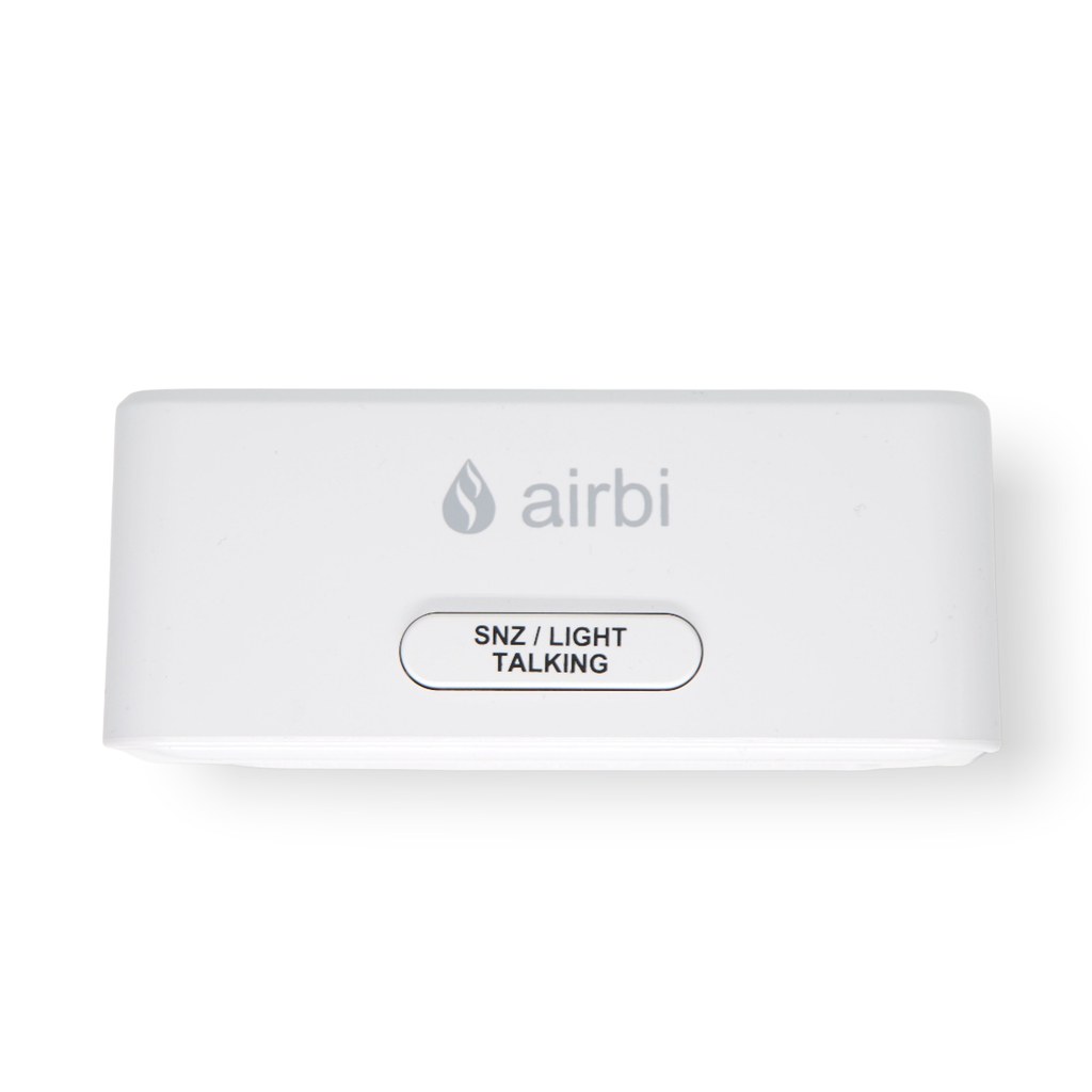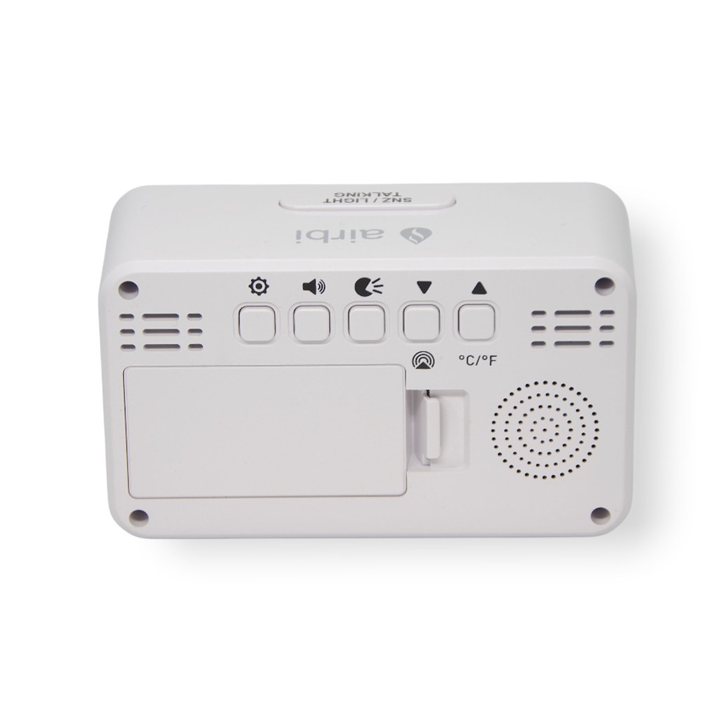 Digitální budík Airbi TALK má oproti ostatním podobným přístrojům navíc hlasové oznámení v češtině nebo polštině. Budík hlasem oznamuje aktuální čas a teplotu.