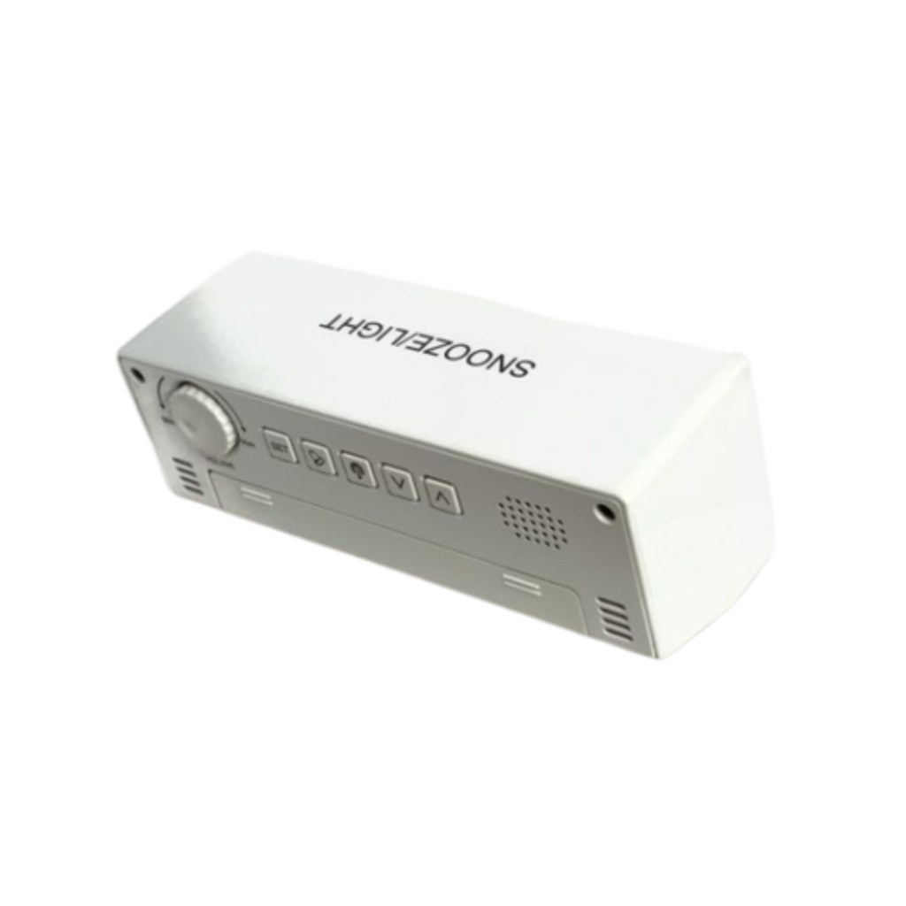 Elegantní bílý budík z odolného plastu, který kombinuje moderní funkce s čistým designem. Díky přesnému rádiovému řízení času je vždy naprosto přesný bez nutnosti ručního nastavování. Budík disponuje dotykovým senzorem, funkcí opakovaného buzení, zobrazením teploty a data a také možností regulace hlasitosti zvonění.