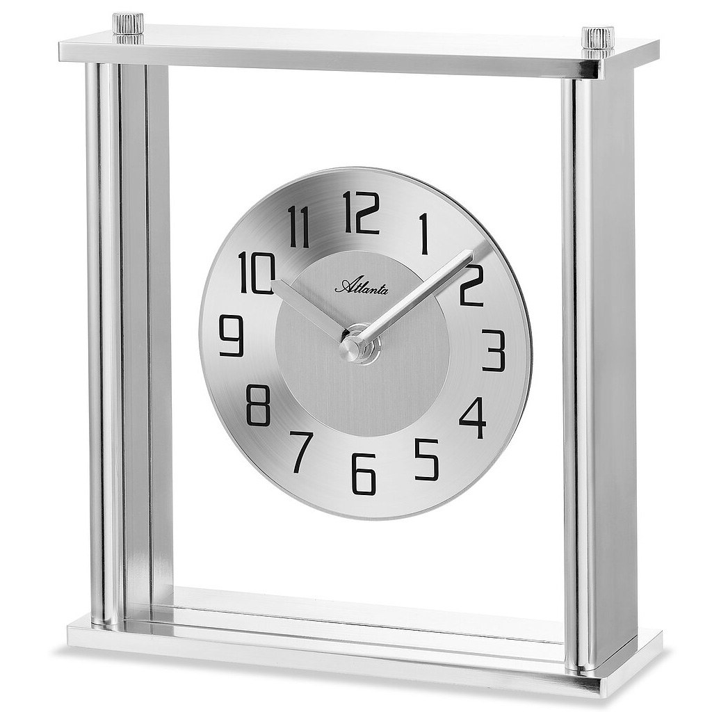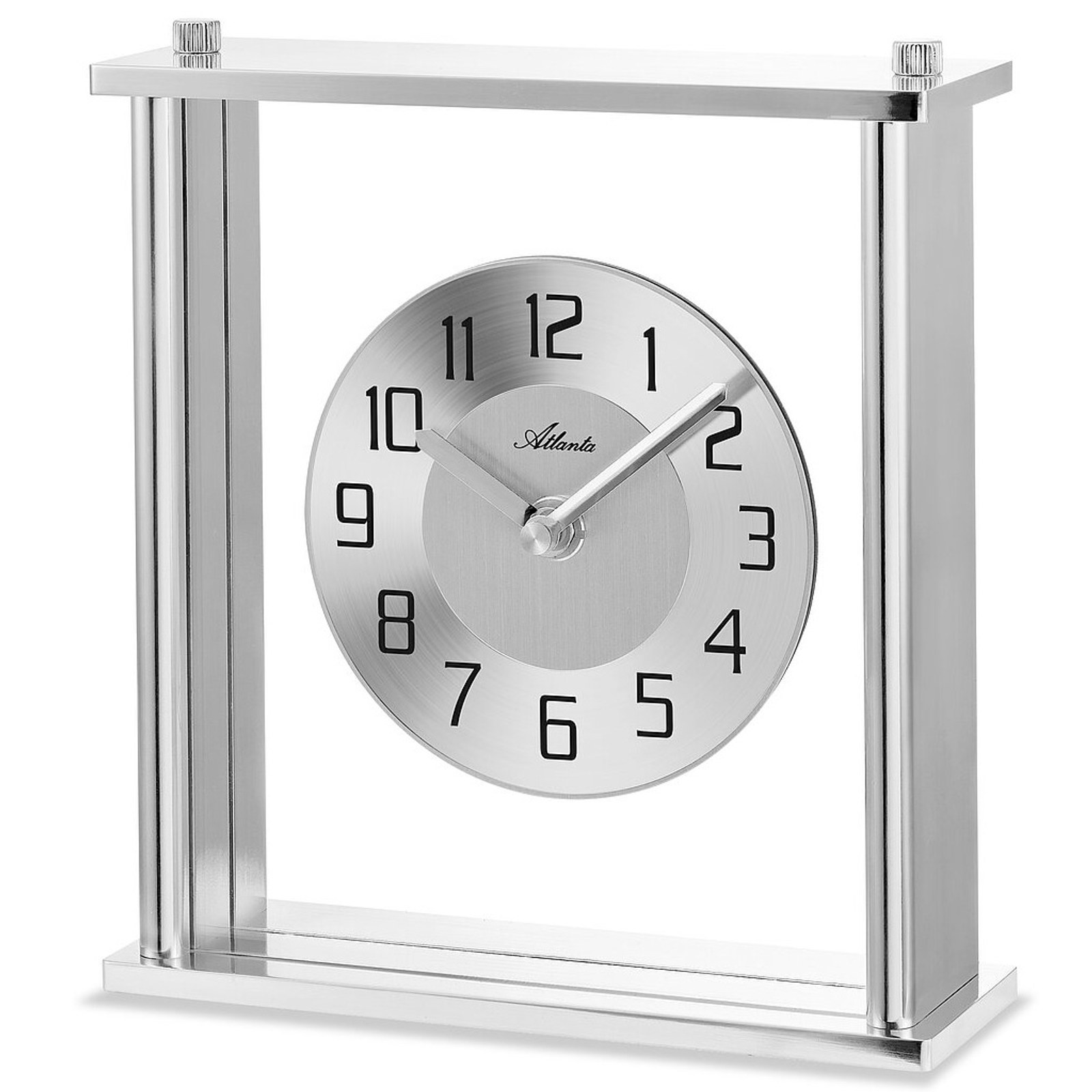 Moderní stolní hodiny do německé značky Atlanta.Materiál: Kov + Sklo + Plast