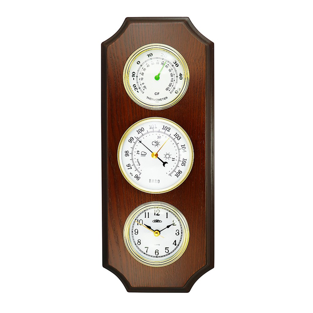 Barometr s teplměrem a vlhkoměrem na dřevěné podložce 4673-34