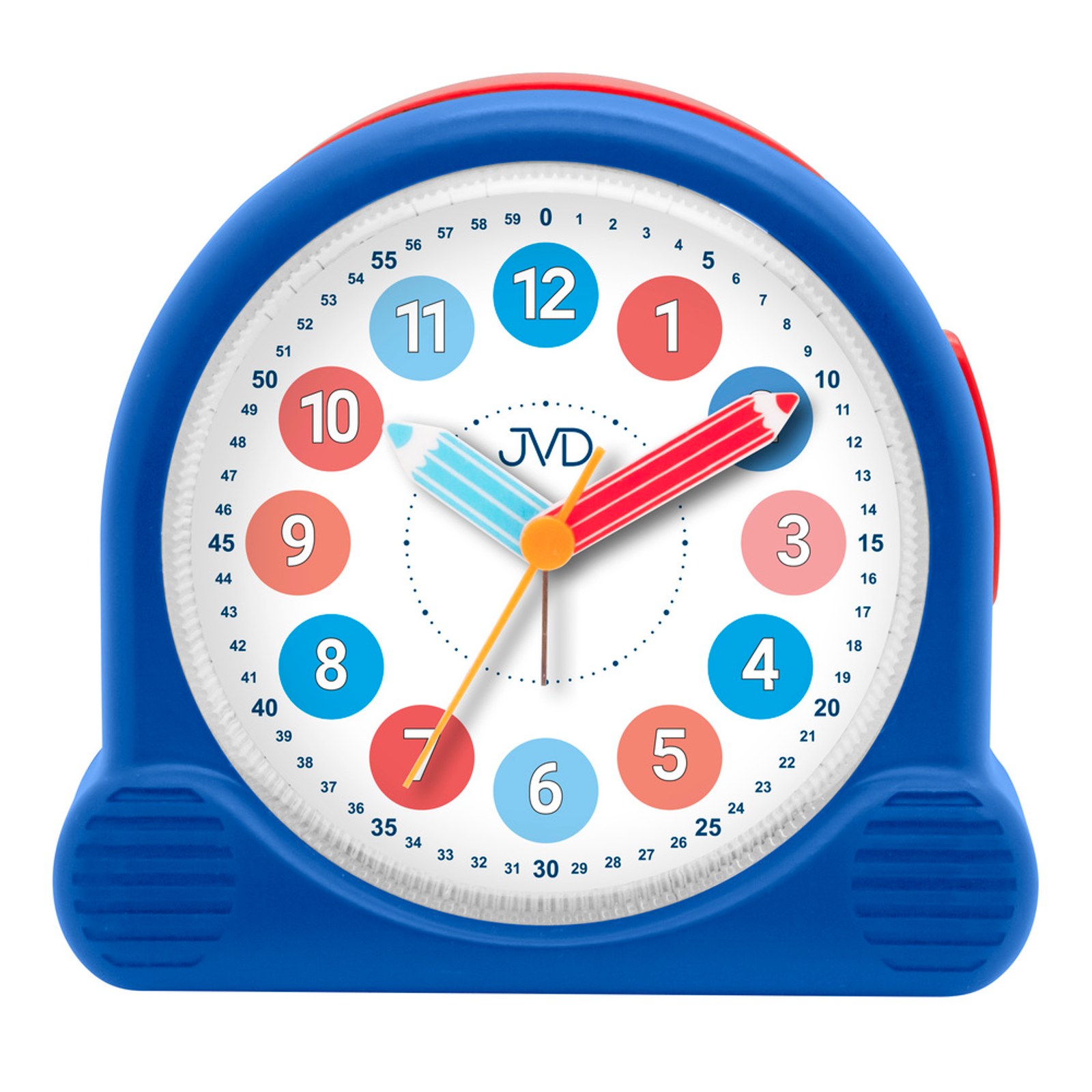 Nový dětský budíček od české značky JVD. Nejen, že se jedná o krásný budíček, ale také velmi dobře čitelný. Velkou výhodou je označení všech minut na ciferníku, což pomůže dětem v určování nebo učení času.