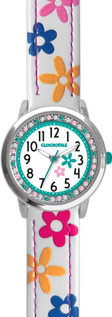 CLOCKODILE Bílé dívčí dětské hodinky s kamínky a kytičkami