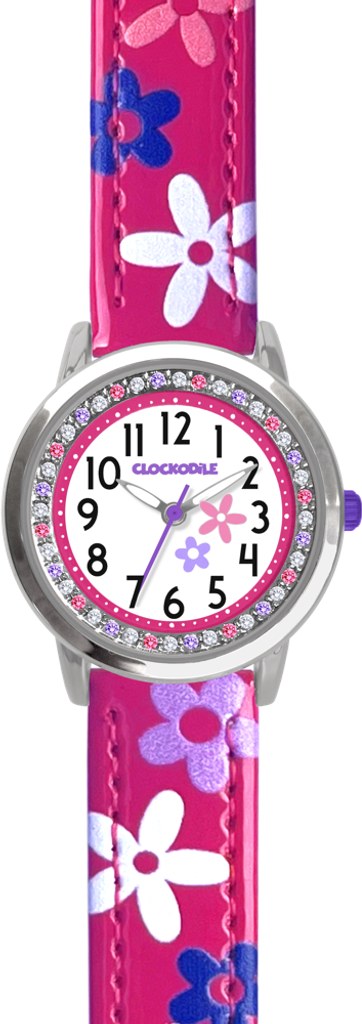CLOCKODILE Růžové dívčí dětské hodinky s kamínky a kytičkami