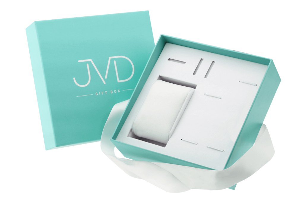 Seznamte se s dárkovou krabičkou JVD, která váš dárek posune na další úroveň. Do krabičky jednoduše umístěte vámi vybraný model hodinek JVD a doplňte jej o šperkový set - prsten, náušnice, náramek a řetízek. U hodinek Touches můžete místo řetízku zvolit náhradní řemínek, díky kterému vytvoříte ze svých hodinek zcela nové během několika vteřin. Poté už jen stačí zavázat sametovou mašli a dárek je na světě!