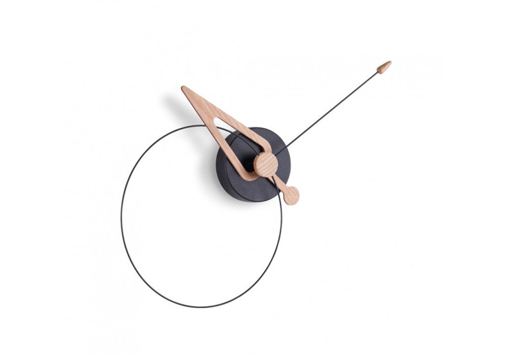 Designové nástěnné hodiny atypického tvaru. Celkový průměr hodin: 40cm. Celková hloubka hodin: 4,5cm. Hodiny pohání německý quartzový strojek UTS s plynulým a tichým chodem. Strojek hodin pracuje na jednu tužkovou baterii AA 1,5V. Materiál ručičky a špičky: dubové dřevo. Materiál ciferníku: ABS. Materiál kruhu a velké ručičky: sklolaminát.