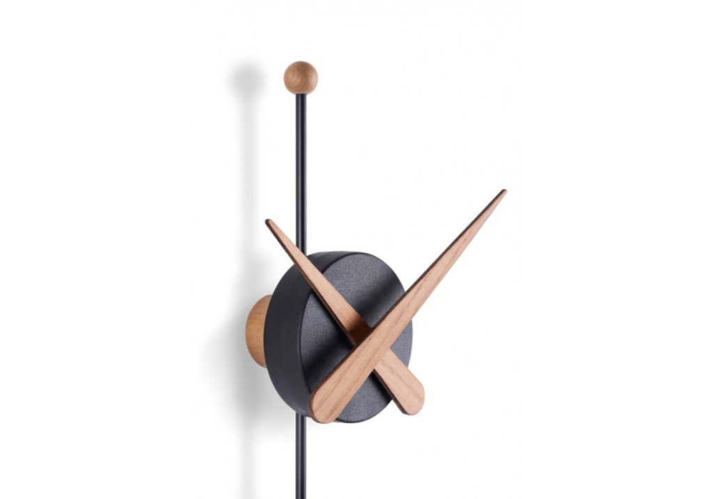 Designové nástěnné hodiny. Celková výška hodin: 63cm. Průměr ciferníku - obvodu ručiček hodin: 28cm. Celková hloubka hodin: 8,5cm. Hodiny pohání německý quartzový strojek UTS s plynulým a tichým chodem. Strojek hodin pracuje na jednu tužkovou baterii AA 1,5V. Materiál ručičky a doplňky: dubové dřevo. Materiál ciferníku: ABS. Materiál svislé tyče: sklolaminát.