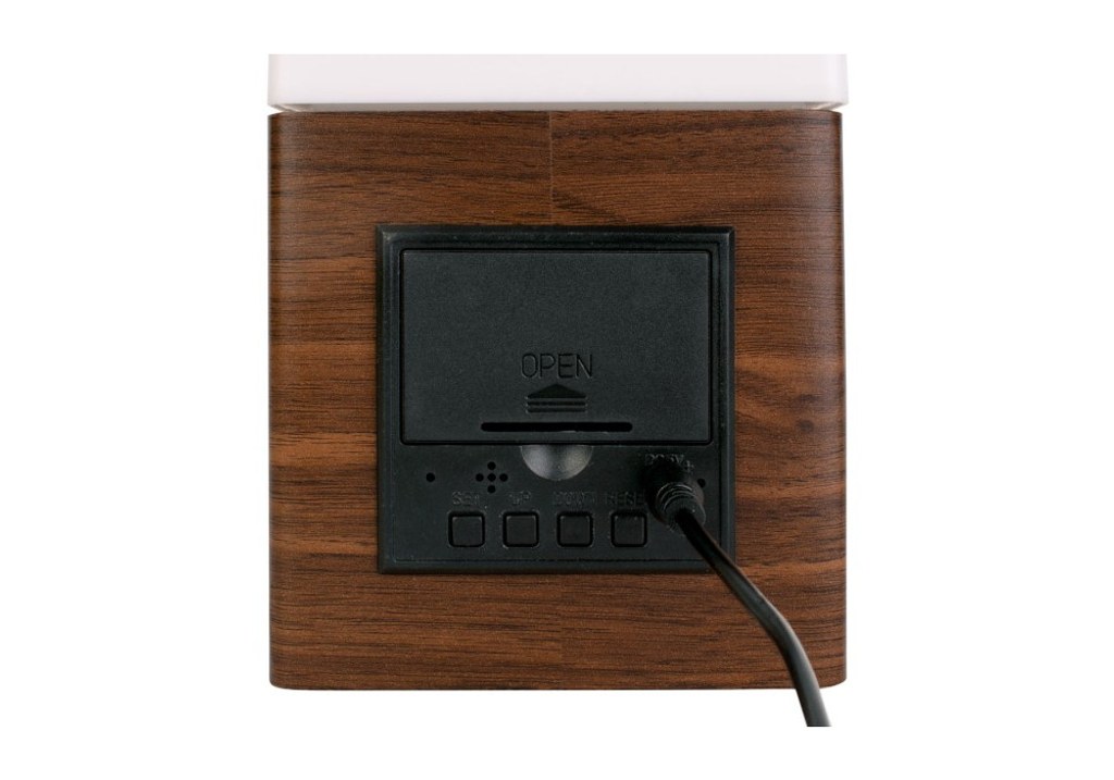 LED stolní hodiny s budíkem a LED lampičkou. Imitace dýhy v odstínu wenge. Funkce: Hodiny formát 12/24 Budík Kalendář Vnitřní teploměr 3 úrovně nastavení svítivosti displeje. Možnost nastavení svítivosti lampičky.