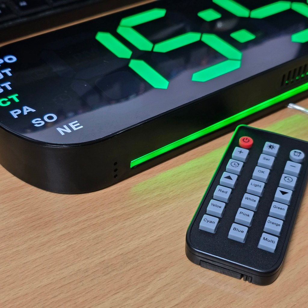 Hodiny lze umístit i na nedostupné místo a to nejen díky extra dlouhému přívodnímu kabelu 340 cm, ale hlavně kvůli dálkovému ovladači, kterým lze obsluhovat veškeré nastavení a funkce.