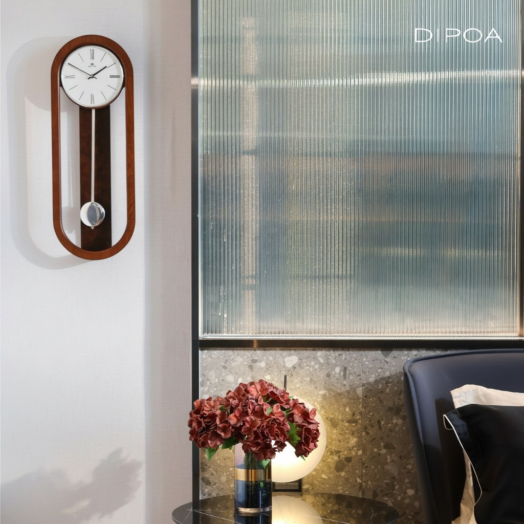 Luxusní nástěnné kyvadlové hodiny od značky Dipoa v krásném stylovém provedení s několika různými možnostmi odbíjení.