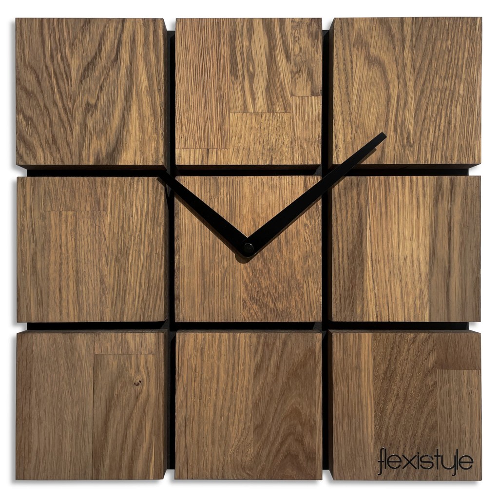 Materiál: dřevo - masivní dub - tmavý Průměr hodin: 30x30 cm Pohon: bateriový (AA - tužková) Tichý chod