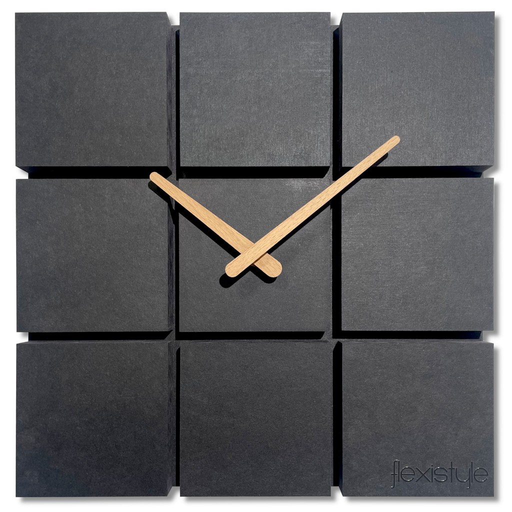 Materiál: MDF deska Průměr hodin: 30x30 cm Pohon: bateriový (AA - tužková) Tichý chod