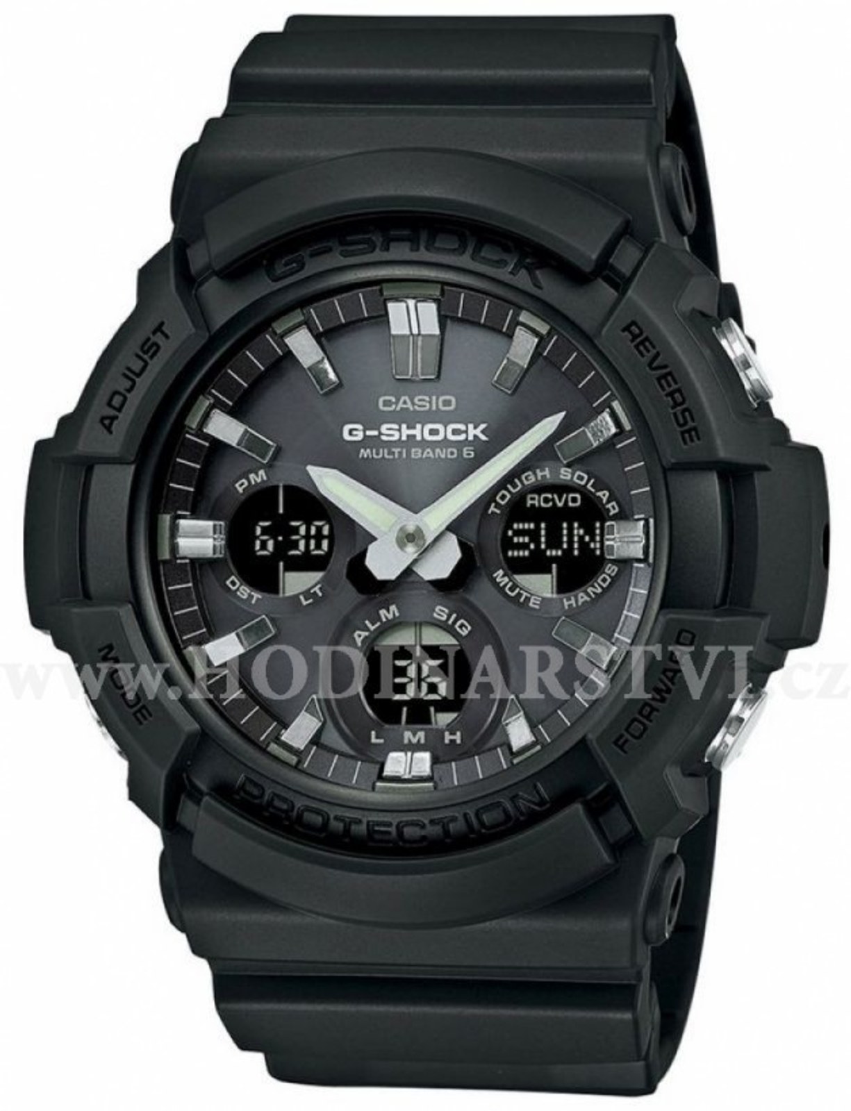 Podrobné parametry: - Pouzdro: plastové - Náramek: plastový - Sklíčko: minerální - Osvětlení: osvícení ciferníku (displeje) LED diodou po stisku tlačítka, volitené délka osvětlení, dosvit - G-Shock: zvýšená odolnost proti nárazům a vibracím - Vodotěsnost: 200M - 20ATM - možné činnosti: potápění s dýchacím přístrojem - Pohon: solární napájení - quartzový strojek je elektricky napájen baterií, která je dobíjena solární energií. Indikátor stavu baterie ukazuje aktuální úroveň dobití baterie.