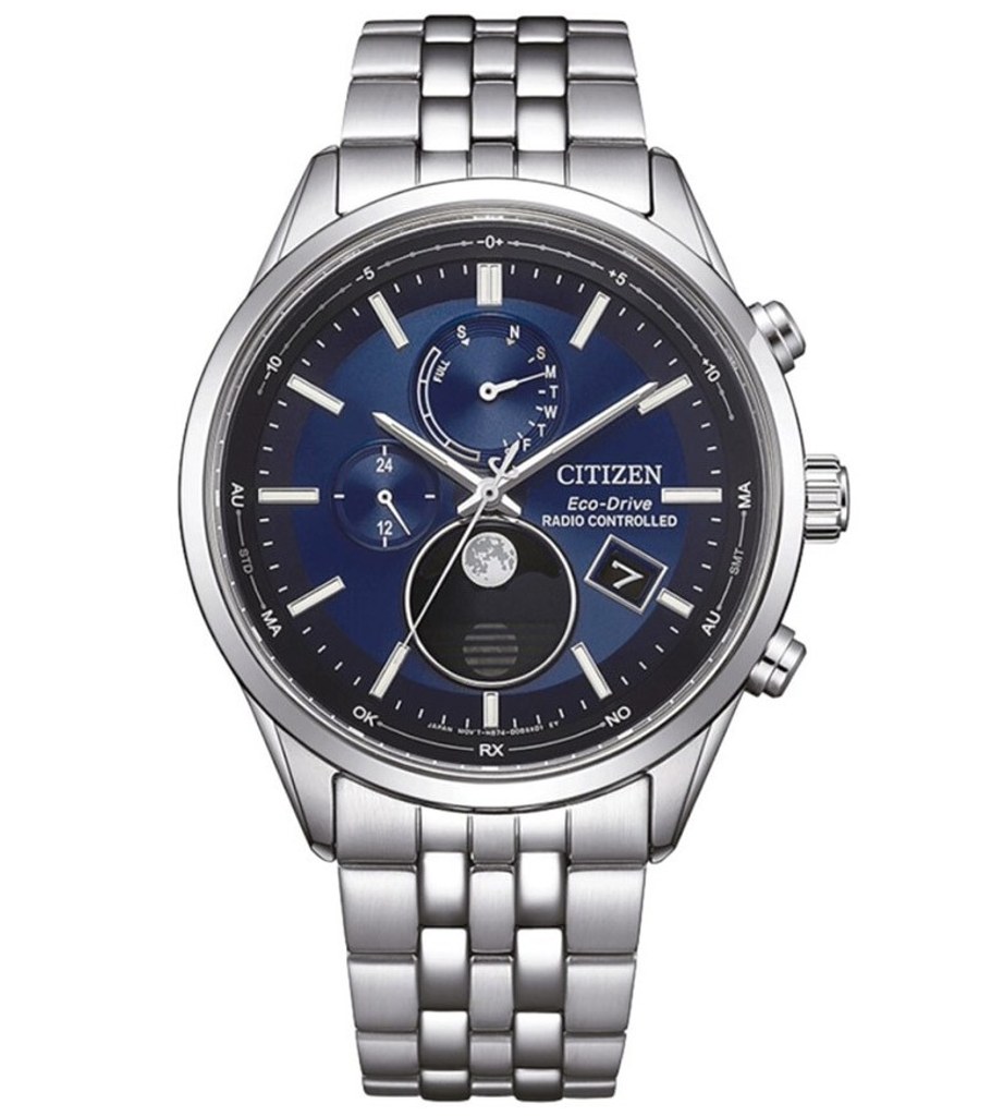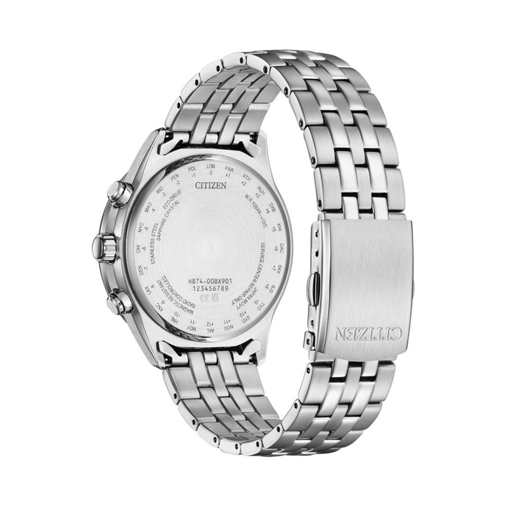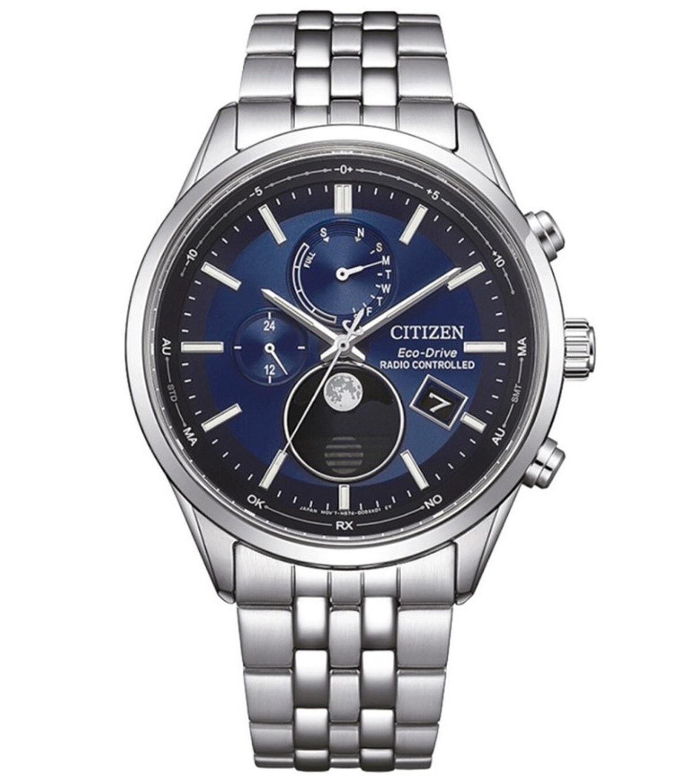 SYSTÉM POHONU - ECO-DRIVE - Rezerva chodu: 2,5 roku - Ukazatel rezervy chodu: ano Zobrazení času (analogově): hodiny, minuty, sekundy 24 hod. ukazatel: ano Zobrazení kalendáře (analogově): datum, den v týdnu DALŠÍ ČASOVÉ FUNKCE (ÚDAJE) - Automatický kalendář: ano - Světové časy: ano - Časová pásma: ano - Letní čas: ano - Ukazatel měsíční fáze: ano FUNKCE PŘÍJMU RÁDIOVÉHO ČASOVÉHO SIGNÁLU (RADIO CONTROLLED) - Vysílače rádiového signálu: DCF, WWVB, JJY, BPC - Automatická aktivace příjmu signálu: ano - Manuální aktivace příjmu signálu: ano - Potvrzení stavu příjmu: ano - Ukazatel výsledku posledníhoh příjmu: ano Energeticky úsporný režim: ano Výstraha potřeby dobití: ano Ochrana proti přílišnému nabití: ano Automatická korekce ruček: ano Antimagnetické provedení: ano Detekce nárazů: ano SPECIÁLNÍ PARAMETRY A FUNKCE: automatický výpočet fáze mesíce; funkce přepínání fáze měsíce (severní/jižní polokoule); funkce manuální úpravy fáze měsíce