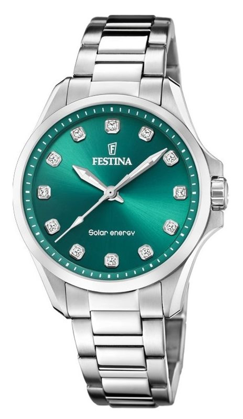 Dámské hodinky v celoocelovém provedení se zeleným číselníkem zdobeným zirkony zaujmou na první pohled. Své majitelky potěší zejména solárním napájením, díky kterému odpadá nutnost časté výměny baterie.