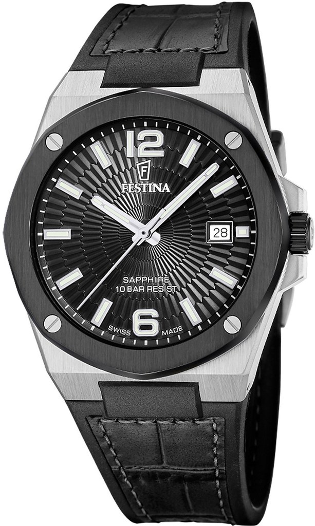 Hodinářská značka Festina vznikla v roce 1902 jako malá švýcarská manufaktura, která své jméno odvodila od motta „Festina lente“ (spěchej pomalu). Z tohoto popudu vznikla nová značka hodinek Festina. V roce 1984 převzal značku od švýcarské zakladatelské rodiny španělský obchodník Miguel Rodriguez. Díky jeho španělské podnikavosti se firma s dlouholetou švýcarskou hodinářskou tradicí rozrostla v jednu z celosvětově nejvýznamnějších hodinářských značek. Dnes, s více než stoletou tradicí a se spoustou neocenitelných zkušeností, je Festina výrobcem vysoce kvalitních hodinek, jejichž design nejen že následuje aktuální módní trendy, ale je přímo jejich tvůrcem. Festina je symbolem jak pro řemeslnou kvalitu, maximální preciznost a spolehlivost, tak pro eleganci, styl a estetiku. Díky velkému úsilí o inovace a zavedení moderních technologií, byla Festina schopna popularizovat materiály a postupy, které její hodinářské výrobě přinesly jedinečnou exklusivitu, byly to například titan nebo keramika. Festina byla také dlouhodobým sponzorem závodu Tour de France, v jejímž duchu vzniká každý rok speciální kolekce hodinek Chronobike inspirovaná cyklistikou.