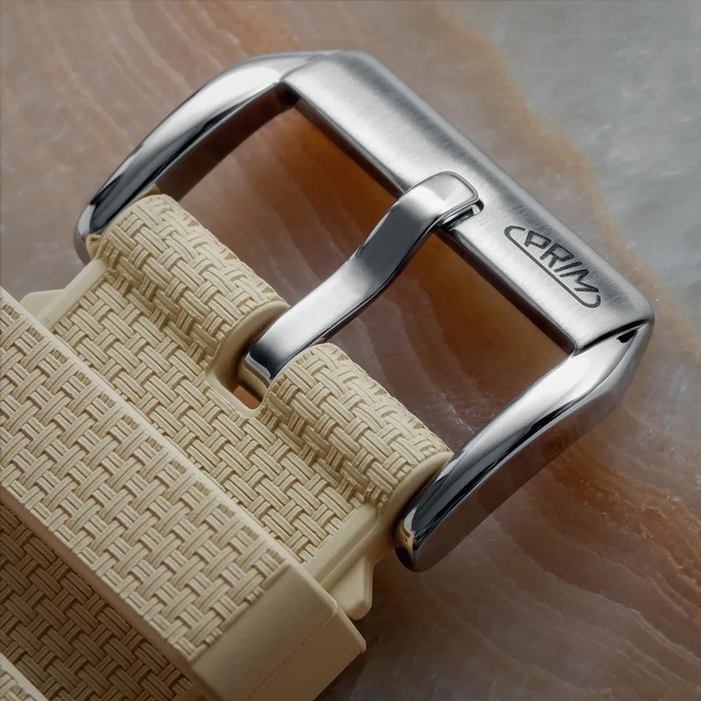 Model PRIM Czech Team Champions 2026 je osazen pohodlným řemínkem PRIM z FKM (fluoroelastomer) materiálu a je vybaven rychloupínací funkcí Easy-click. Tento materiál je vysoce odolný vůči teplu, potu, vodě a UV záření. Díky své pružnosti řemínek nepraská ani netvrdne jako je tomu u levných silikonových a pryžových řemínků. Vyznačuje se dlouhou životností, má antialergenní vlastnosti, nelepí se na kůži, má jemně sametový povrch, nepřitahuje prach a je vhodný pro každodenní nošení i sportovní aktivity.
