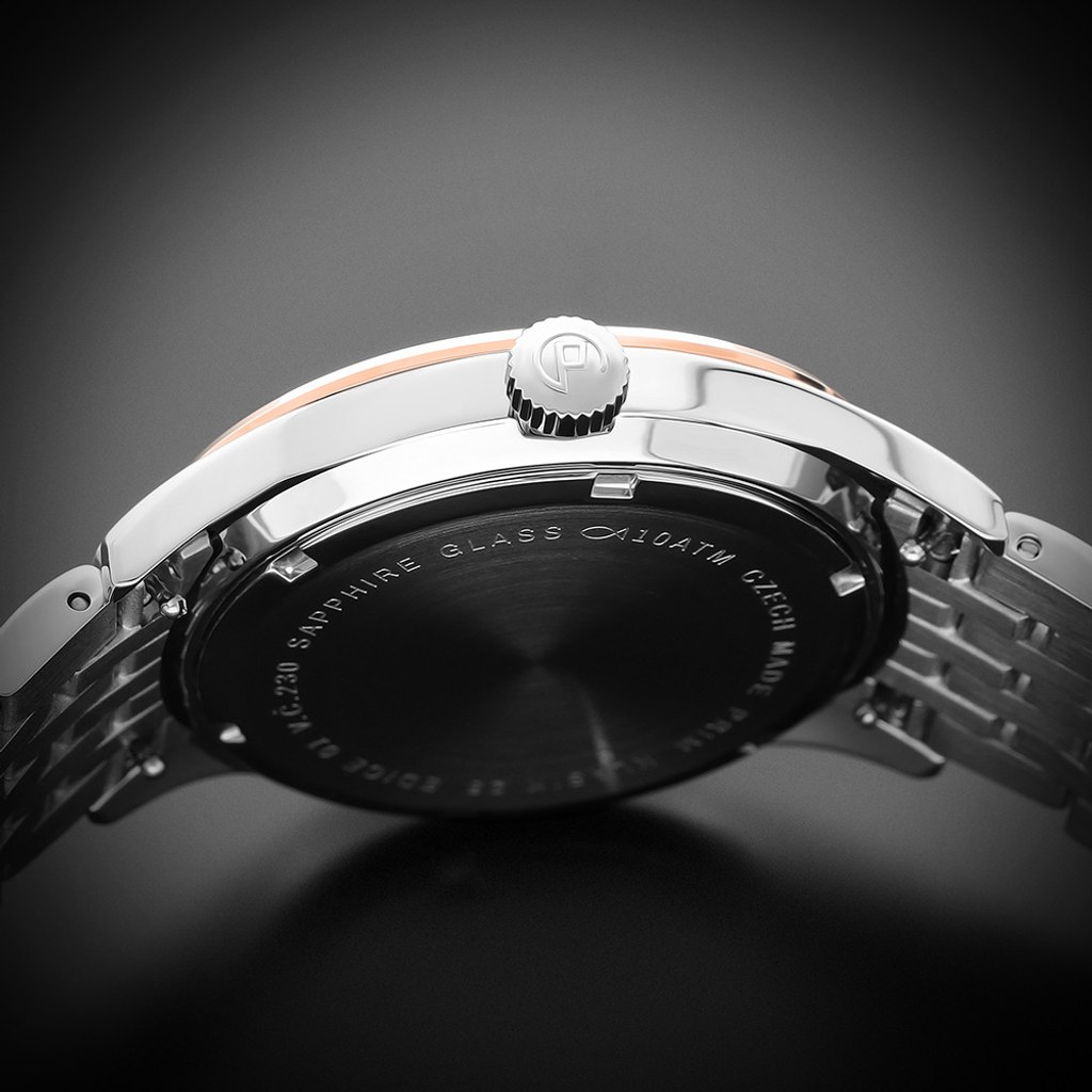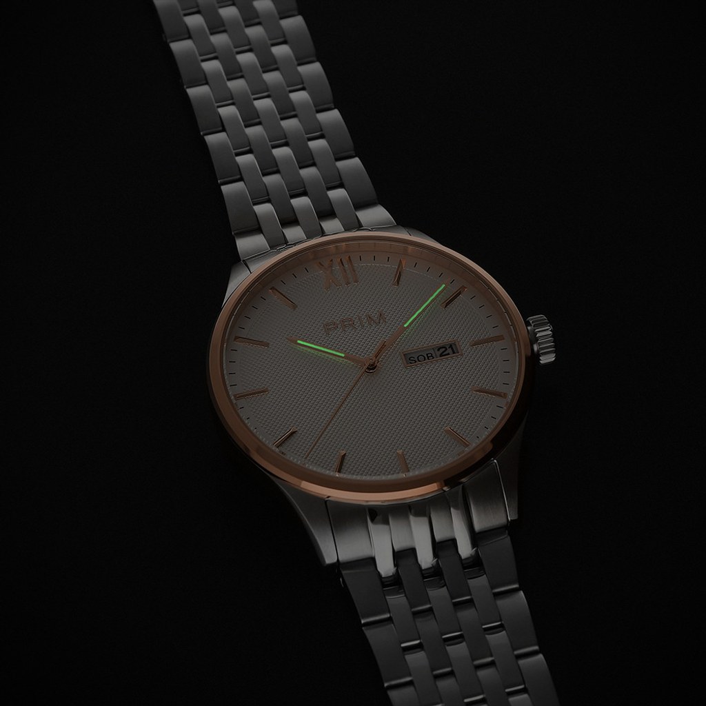 Pánové ocení nově voděodolnost 10 ATM. Nový je také propracovaný plastický číselník s fasovanými indexy na jehož vnějším okraji je zobrazena minutová stupnice. Nechybí ani oblíbené luminiscenční prvky ručiček. Hodinky PRIM Klasik 25 přináší nejen sofistikovaný vzhled, ale i praktické funkce, včetně zobrazení dne v týdnu s českými názvy a data.