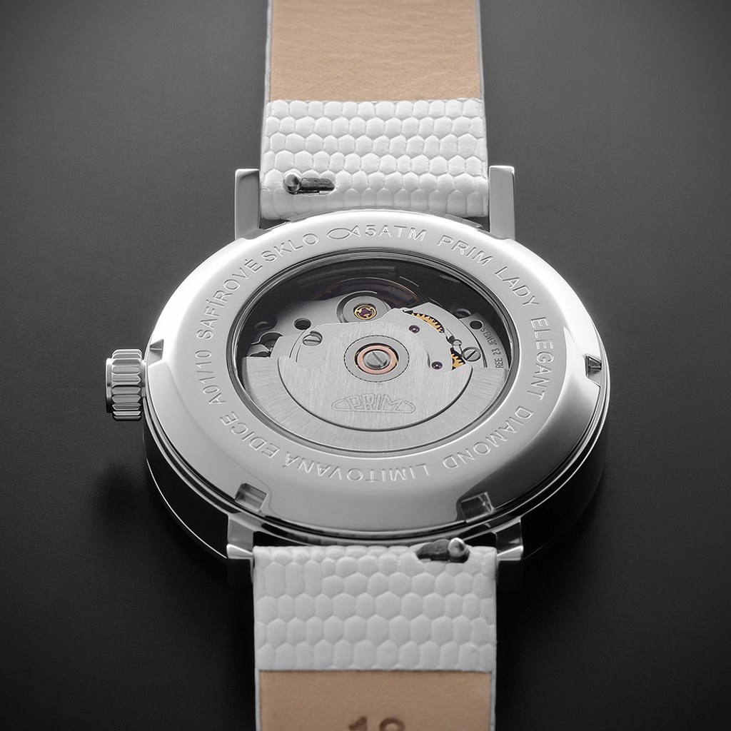 Limitovaná originální edice PRIM Lady Elegant Gold Diamond vyzařuje klasickou eleganci, podmaňující si srdce žen. Tyto automatické hodinky jsou stvořeny pro všechny dámy, které od svých doplňků očekávají nejen trendy vzhled, ale i vysokou kvalitu. Hodinky jsou vyrobeny v celkovém počtu 40 kusů, 10 kusů každé verze a jsou individuálně číslovány.