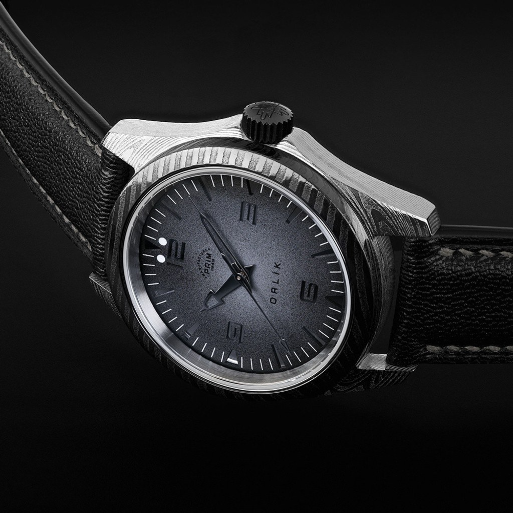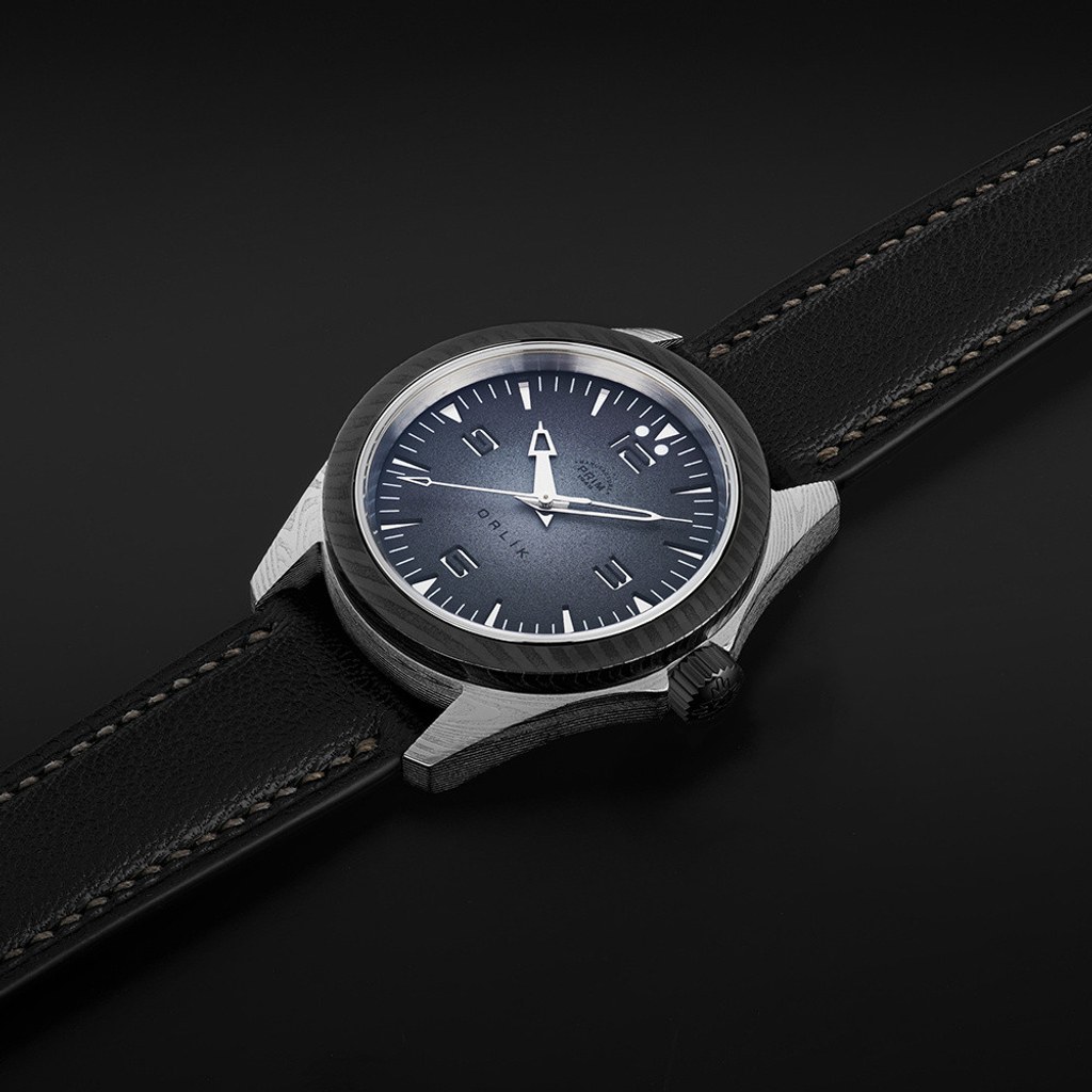 Číselníky jsou ručně lakované, perforované a každý kus je originál. Noblesnější varianta s brilianty ladí s psacím fontem Orlík, technická pak s jeho moderní verzí. V obou případech je strojem vlastní kalibr PRIM 95.