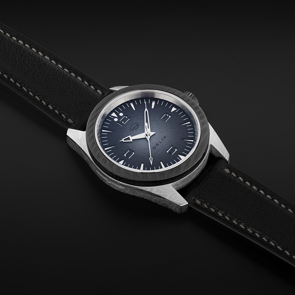 Pouzdro z damaškové oceli austenit je hypoalergenní a nese jedinečnou strukturu zvýrazněnou ručním leštěním. Nová konstrukce s DLC korunkou zajišťuje odolnost i vodotěsnost do 10 ATM.