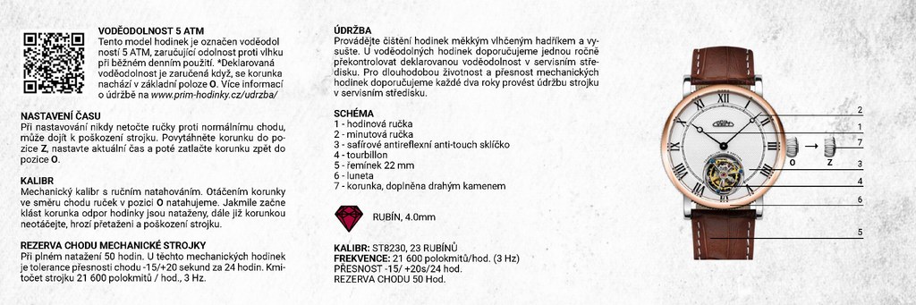 Společnost PRIM představuje svůj nový model hodinek PRIM Tourbillon Bedřich Smetana, unikátní limitovanou edici, která vzdává hold jednomu z nejvýznamnějších českých hudebních skladatelů Bedřichu Smetanovi. Tyto výjimečné hodinky vznikly při příležitosti významného výročí Smetanova narození a oslavují jeho přínos pro českou hudbu a kulturu. Tento model kombinuje nadčasovou eleganci, precizní hodinářskou práci a luxusní detaily, čímž se stává nejen unikátním časoměřičem, ale také cenným sběratelským kouskem.