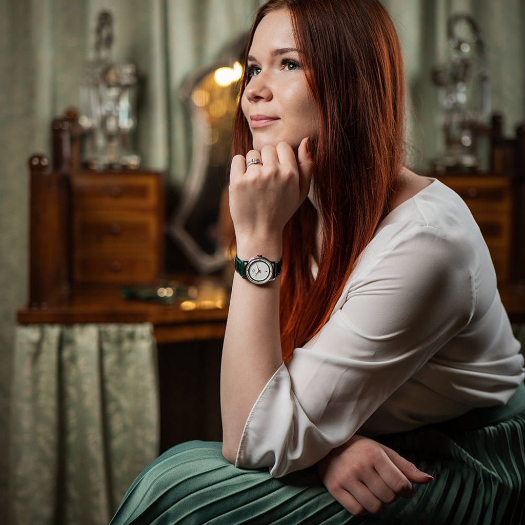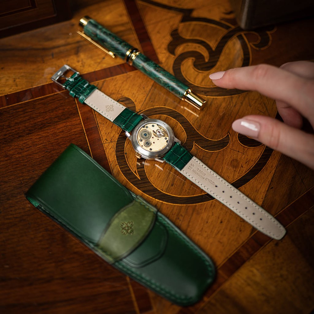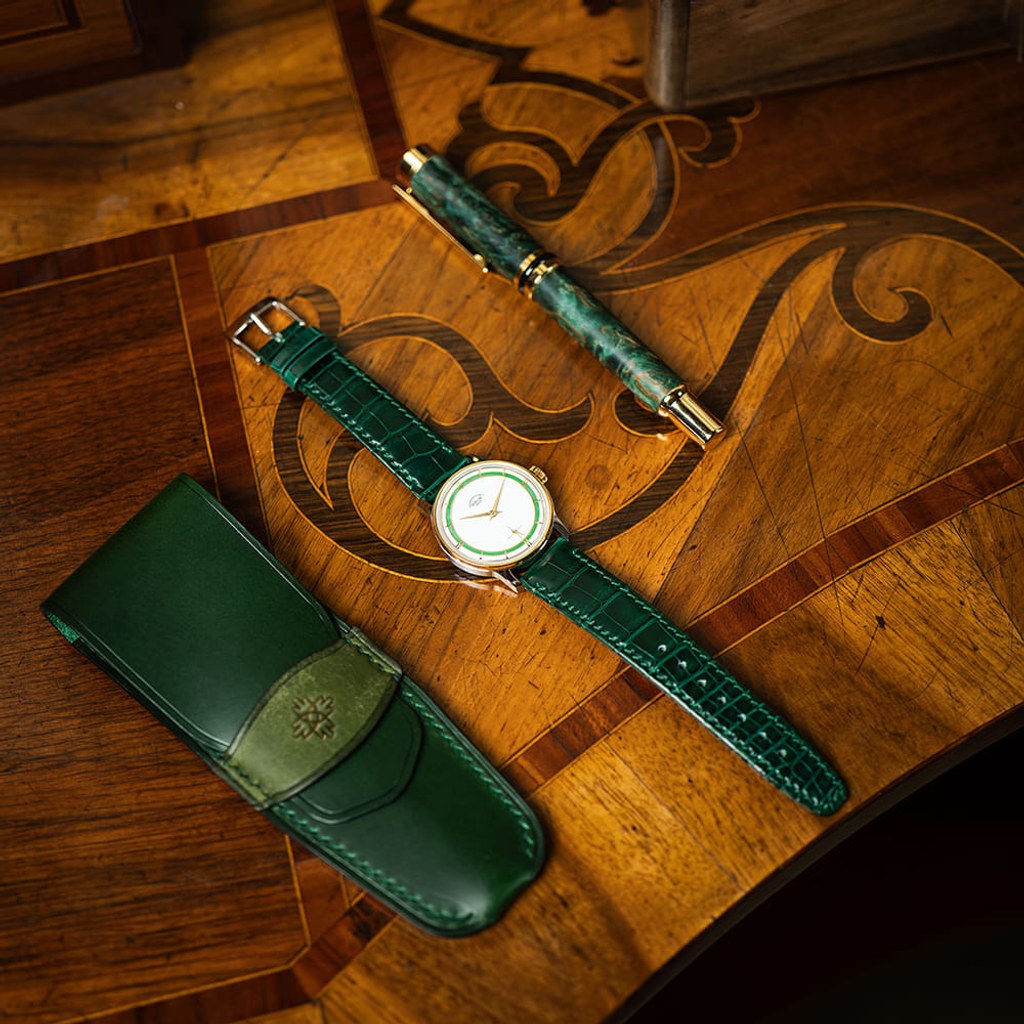 Nejvýraznějším prvkem designu limitované edice PRIM Traktor 34 je bezpochyby propracovaný skládaný číselník. Kontrastní keramická objímka v atraktivní zelené barvě působivě vyniká na bílém podkladu. Elegantní vzhled hodinek je doladěn decentními zlacenými indexy a mimostřednou sekundovou ručkou, typickou pro původní model. Nově navržené pouzdro o průměru 34 mm je svou velikostí a tvarem ideální pro každodenní nošení.