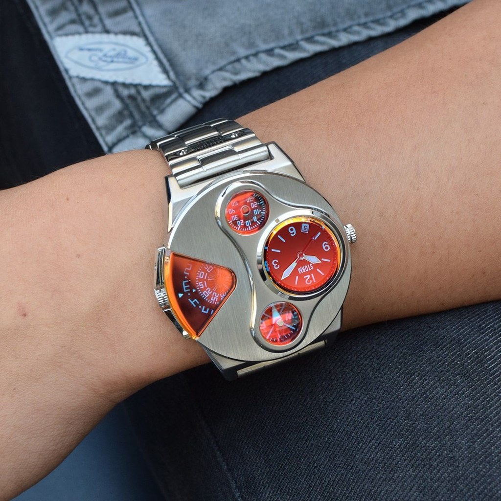 Hodinky V2 Navigator ze speciální kolekce STORM je futuristický model, který vás díky funkci duálního času, kompasu i teploměru pomůže navigovat směrem, kterým se zrovna hodláte vydat.