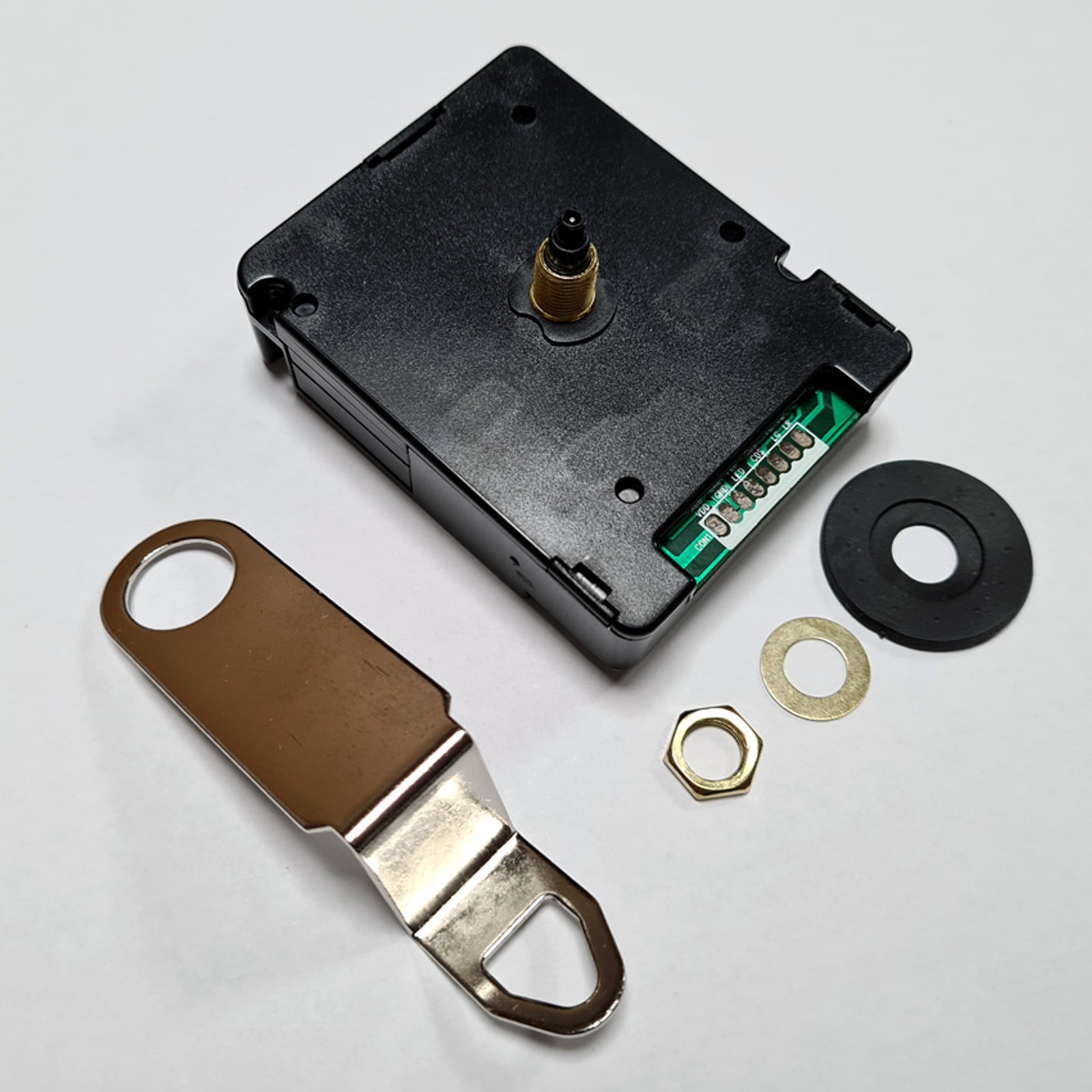Součásti balení: Strojek, kovový úchyt (ze strojku lze vyjmout), podložka pod ciferník, matička na přitažení ciferníku, návod k montáži