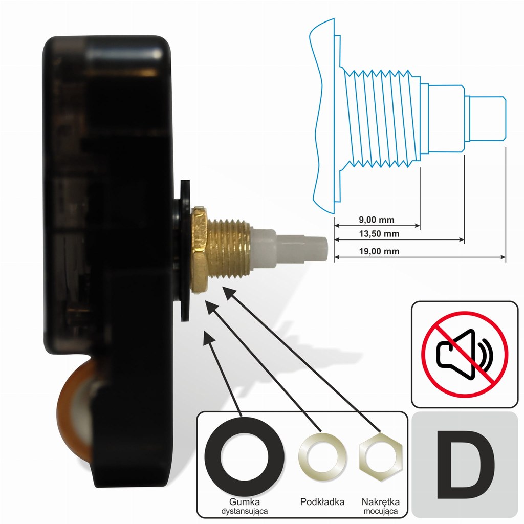 Hodinový strojek se zesíleným a tichým chodem 19 mm - TYP D