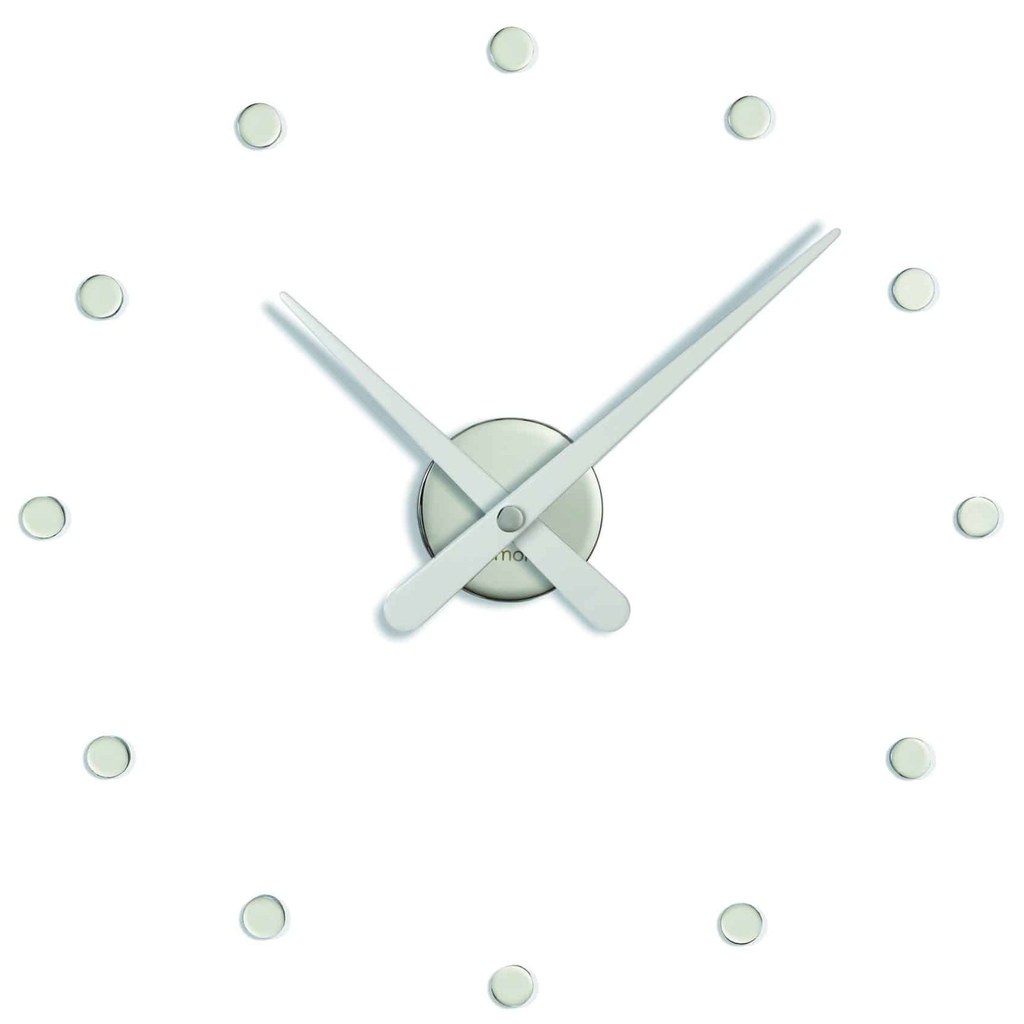 Technický popis: Průměr hodin je 50cm. Jednotlivé body číselníku mají průměr 3cm. Balení obsahuje šablonu pro jednoduchou a rychlou montáž. Hodiny pohání kvalitní německý quartzový strojek UTS s plynulým a tichým chodem. Stojek pracuje na jednu baterii AA 1,5V Materiál hodin: Materiál hodin a bodů číselníku: Inox (exkluzivní vysoce leštěný chromovaný kov). Ručičky jsou z ušlechtilého lakovaného dřeva v odstínu bílé. Instalace hodin je díky přiložené šabloně velmi snadná a přesná.