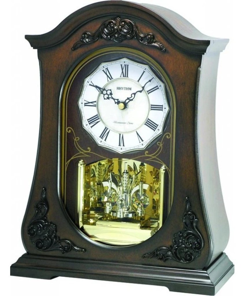 Krásné stylové dřevěné stolní hodiny japonského výrobce Rhythm