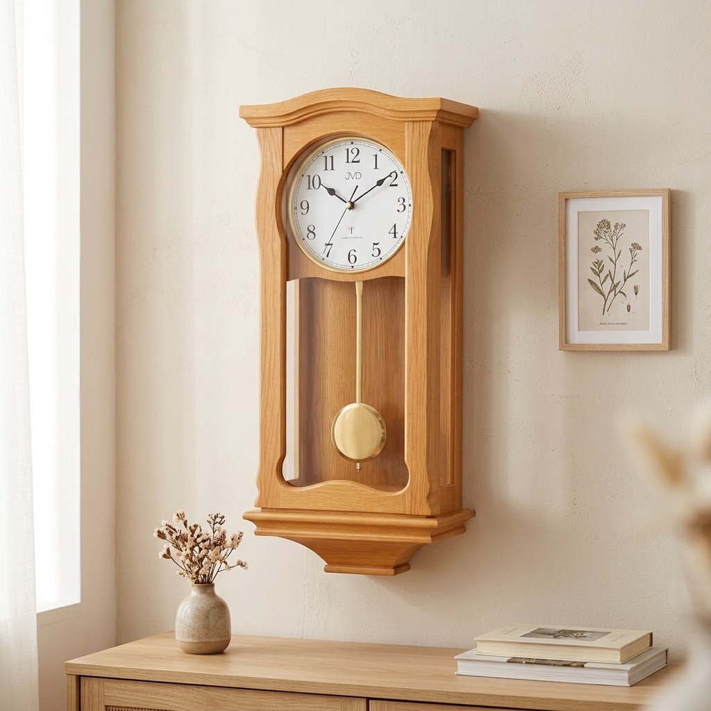 JVD NR2219.1 - Dřevěné kyvadlové hodiny řízené signálem s mnoha funkcemi
