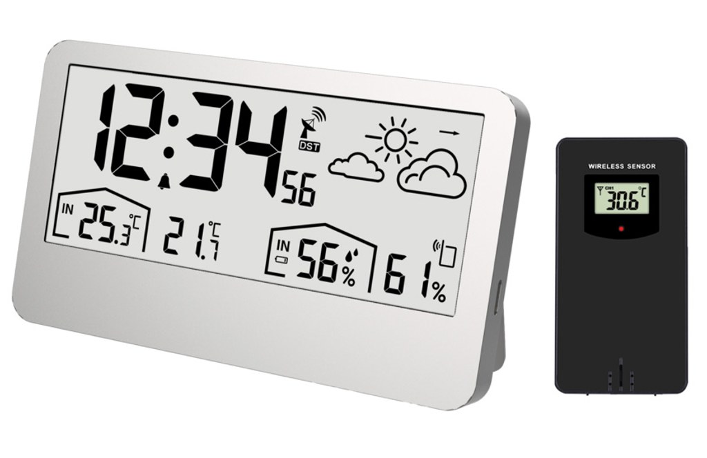 Moderní malá meteostanice s jednoduchým designem, mnoha užitečnými funkcemi a možností celoplošného podsvícení.