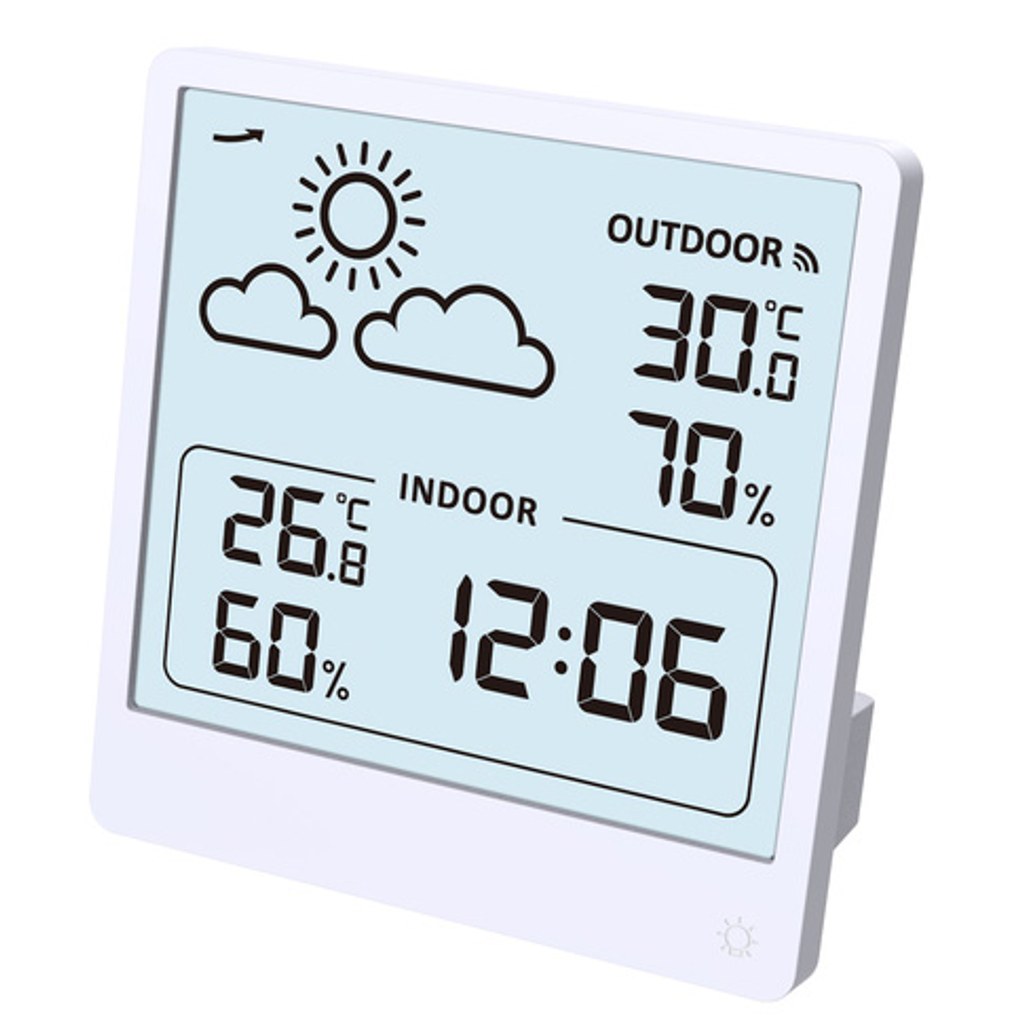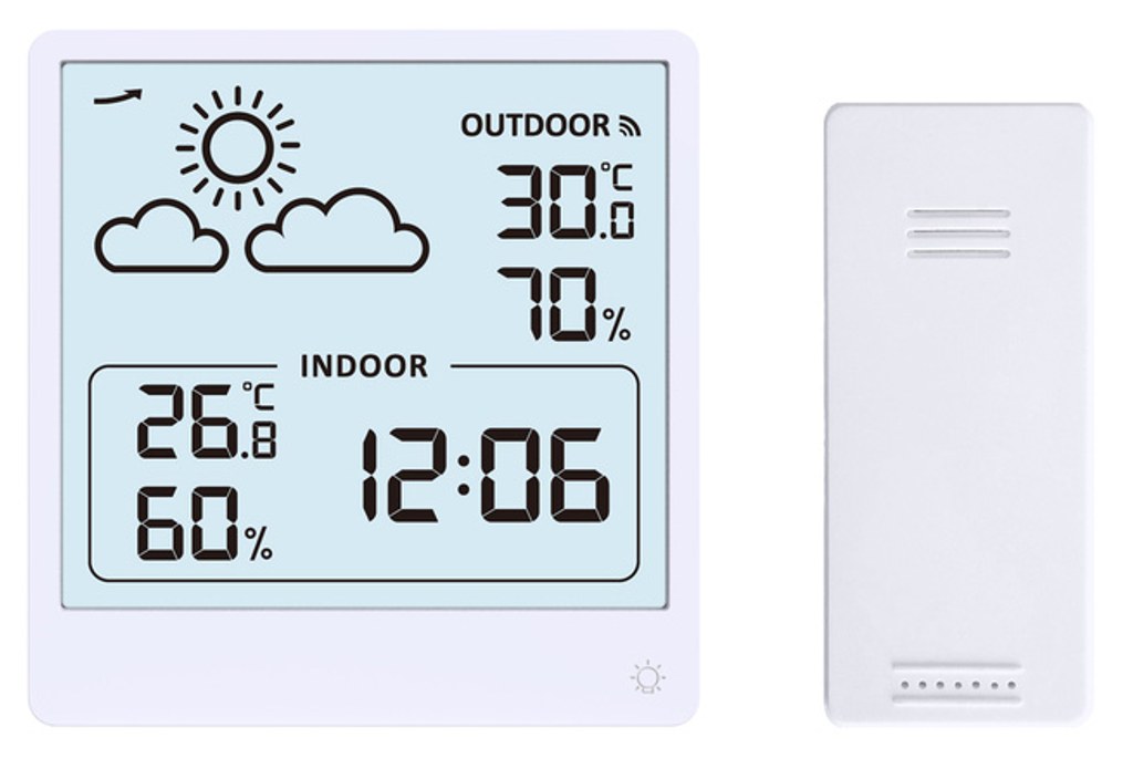 Moderní malá meteostanice s jednoduchým designem, mnoha užitečnými funkcemi a možností celoplošného podsvícení.