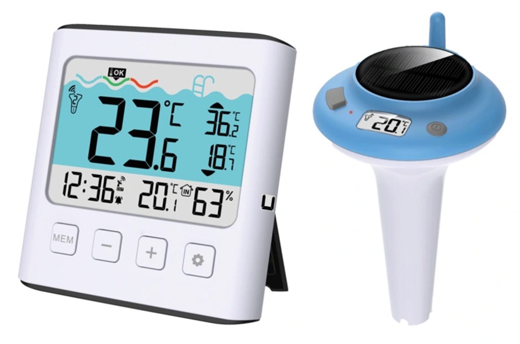 Nový bazénový teploměr od české značky JVD s vynikající čitelností, jednoduchým designem, mnoha užitečnými funkcemi a možností umístění na zeď nebo na postavení. Velkou výhodou je, že bazénový senzor nepoužívá baterii, ale je napájen solárně.