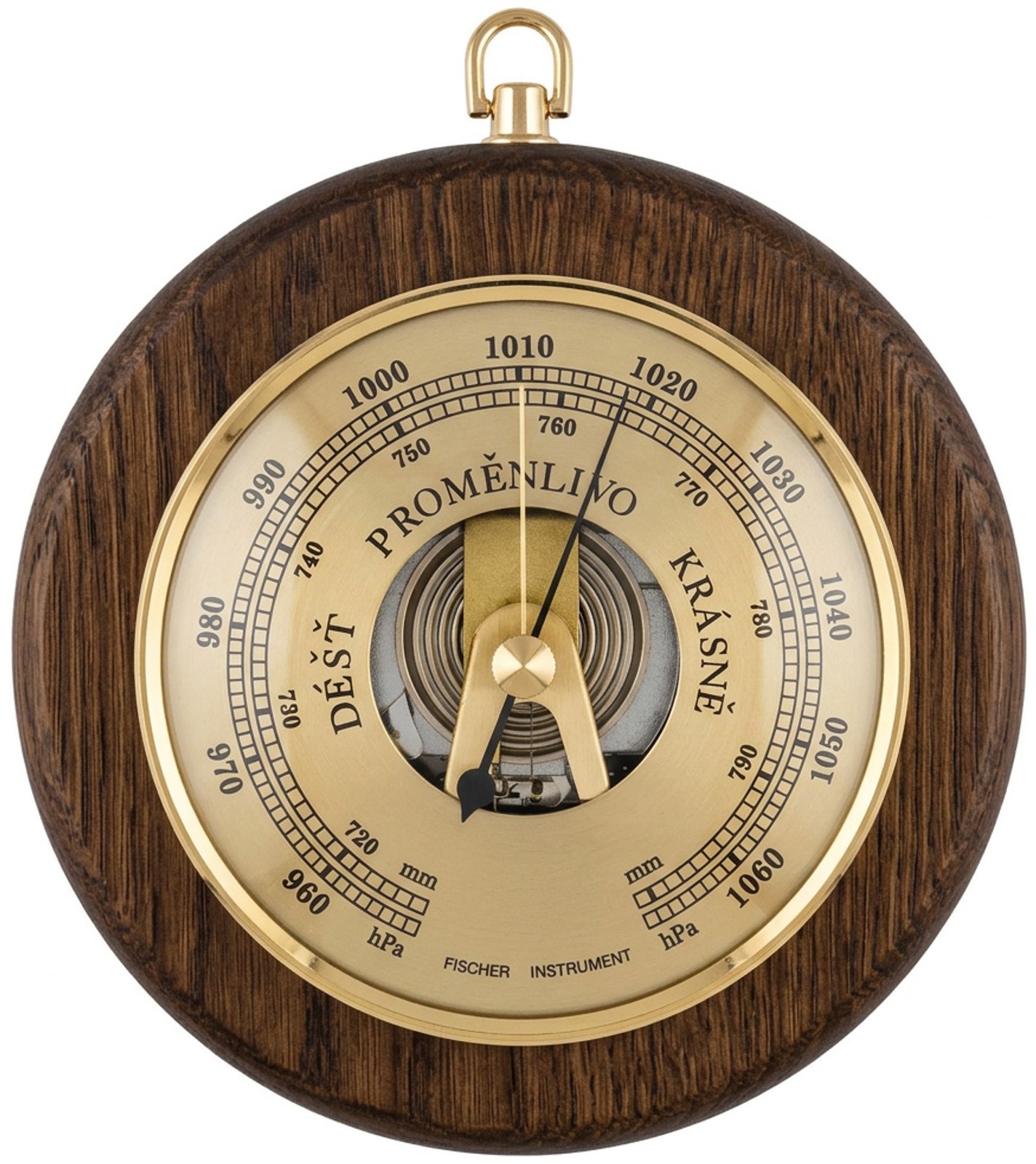 Barometr je určen na zavěšení na otvor vyfrézovaný ze zadní strany nebo na očko nad barometrem