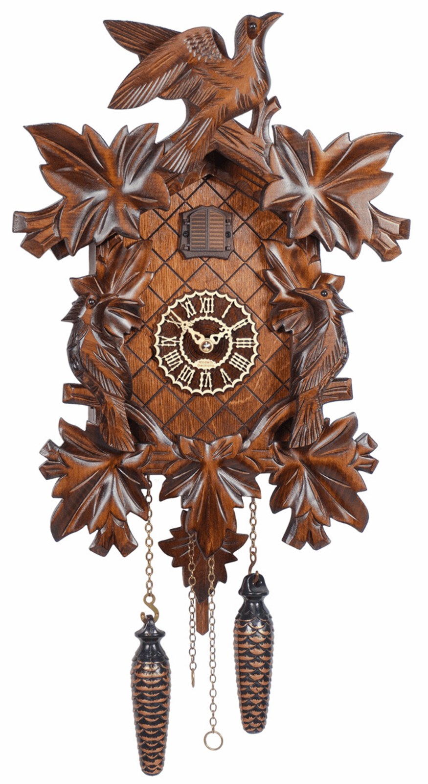 Dřevěné kukačky 352QM od špičkového německého výrobce Trenkle ze Schwarzwaldu mají perfektní zpracování a důmyslný strojek. Jejich cena je více než příznivá. Proto jsou tyto kukačky jedny znejprodávanějších v naší nabídce.