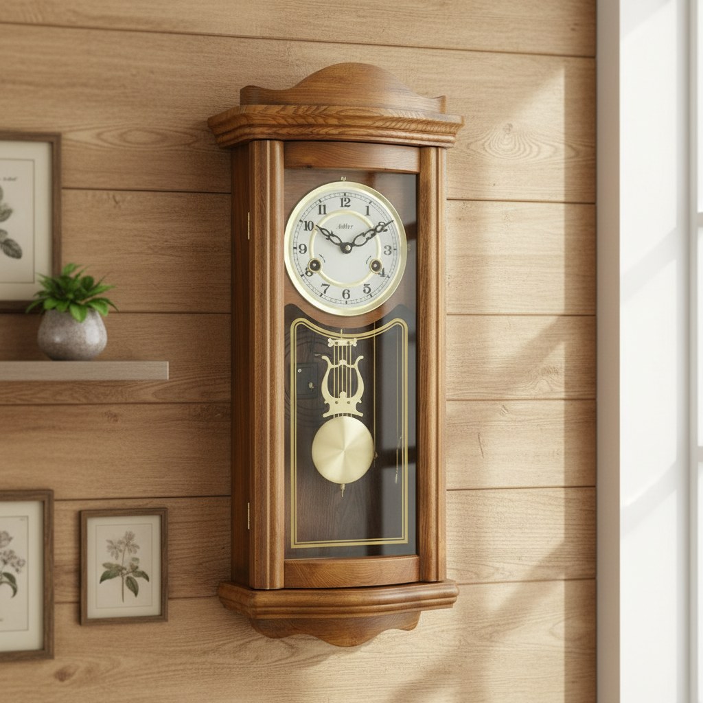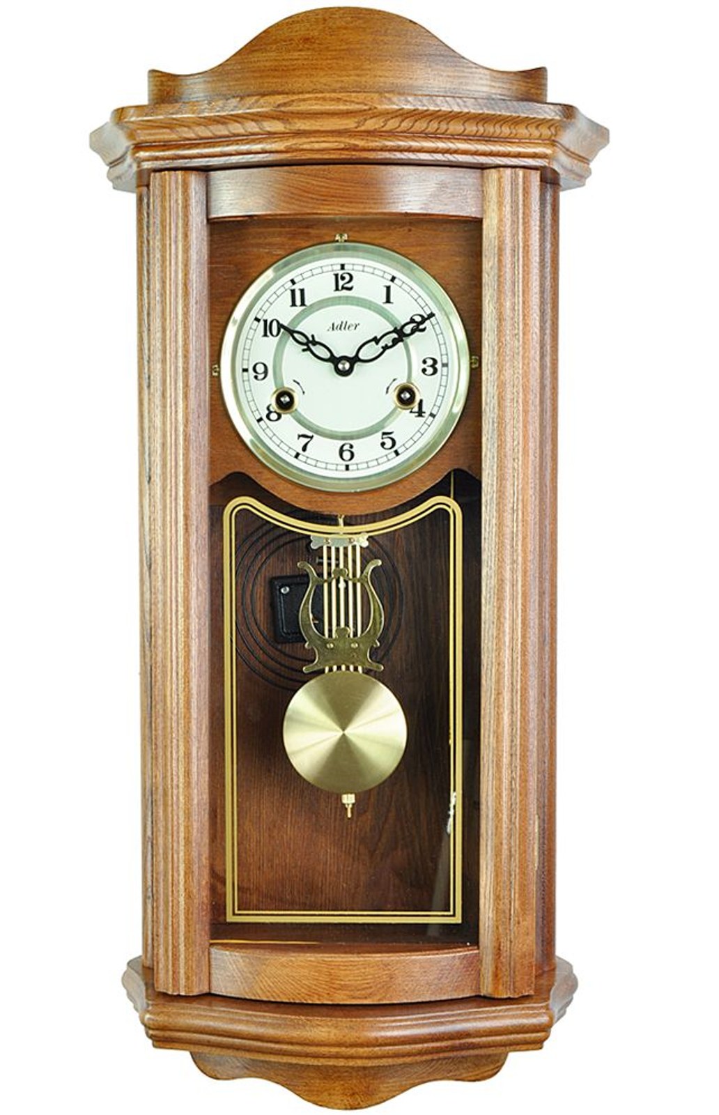 Mechanické hodiny Adler jsou vyrobeny dle hodin, které se vyráběly v době našich babiček. Můžete v nich spatřit kouzlo historie. Na výrobu skříně je použito dřevo. Stroje jsou celokovové, mechanické, půlové - to znamená, že hodiny Vám budou odbíjet v půl 1x a v celou hodinu dle toho kolik je hodin. Natahují se otvorem v ciferníku, jedním se natahuje chod stroje a druhým bití.