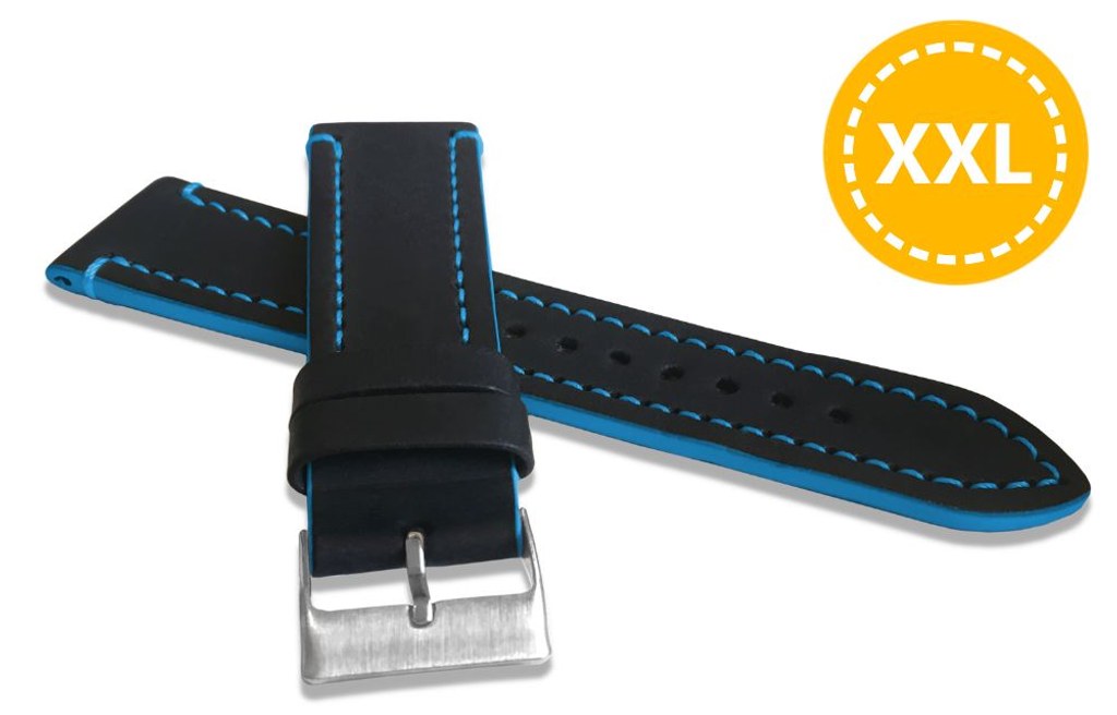 LAVVU LSQBB24 XXL Prodloužený modře prošitý řemínek TAILOR z luxusní kůže Top Grain - 24 - XXL