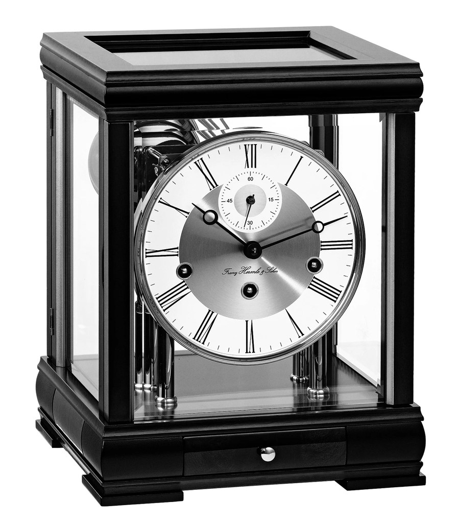 K příležitosti 99. výročí založení společnosti Hermle byla vyrobena exkluzivní limitovaná edice stolních hodin v černém provedení s pochromovaným strojkem 0352 – pouze 99 kusů na světě! Ve spodní části hodin je praktická zásuvka na uložení klíče k natahování. Díky celoskleněnému krytu je tento model ideální pro umístění do volného prostoru – umožňuje ničím nerušený pohled na celý hodinový mechanismus z každé strany. Hodiny Hermle se stanou nepřehlédnutelným designovým prvkem na komodě, krbové římse nebo pracovním stole a zároveň spolehlivě plní svůj praktický účel.