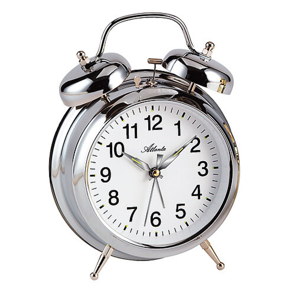 Klasický kovový mechanický budík s kovovým natahovacím strojkem. Vzbudí klasickým drnčením. Natahuje se jednou denně a na jedno natažení vydrží jít až 36 hodin.