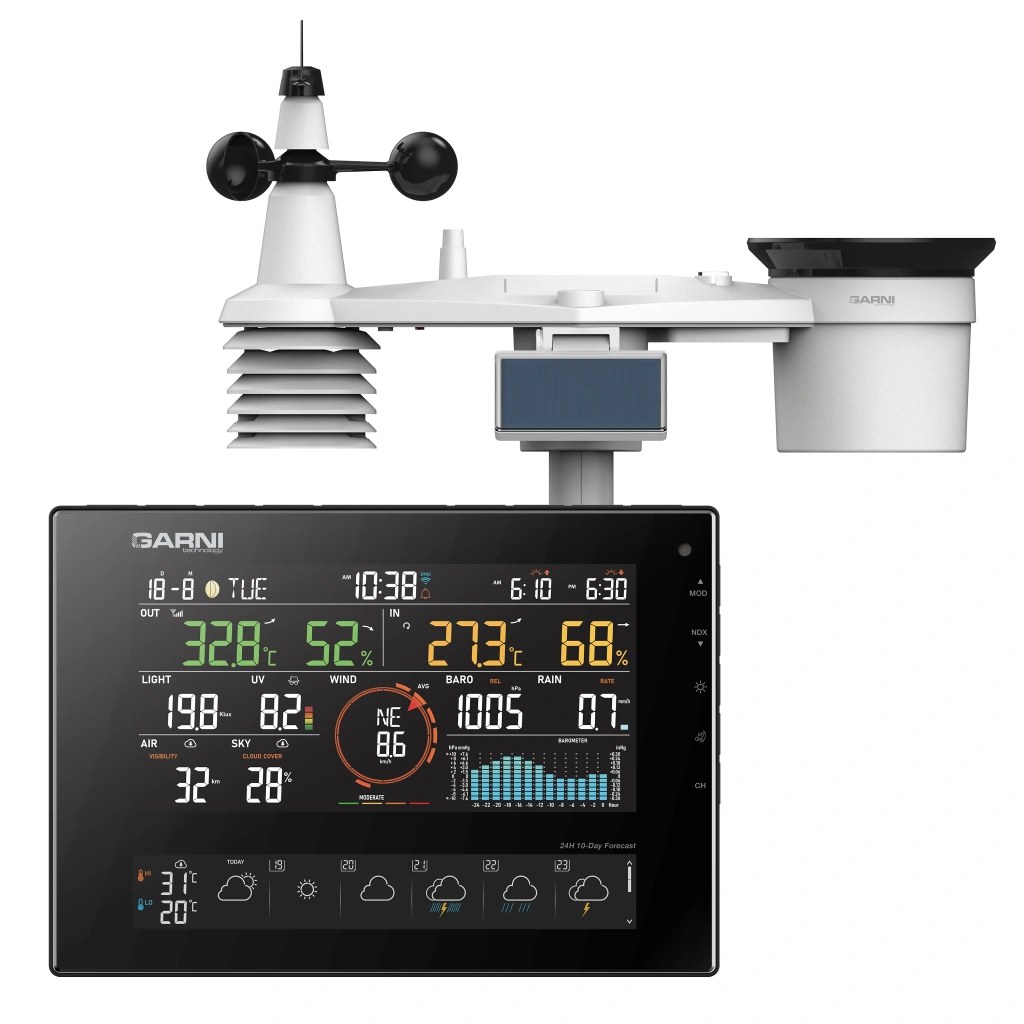 Integrované bezdrátové čidlo 7-v-1 GARNI 1NG měří vnější teplotu a relativní vlhkost, rychlost a směr větru, dešťové srážky, UV index a sluneční záření, a data jsou odesílána do hlavní jednotky až do vzdálenosti 150 m (v otevřeném prostoru). Napájení zajišťuje zajišťuje vestavěný kapacitor, který je nabíjen pomocí vestavěného solárního panelu. Baterie slouží jako záložní zdroj. Čidla jsou kompletně smontovaná a kalibrovaná tak, aby pro vás byla instalace co nejjednodušší.