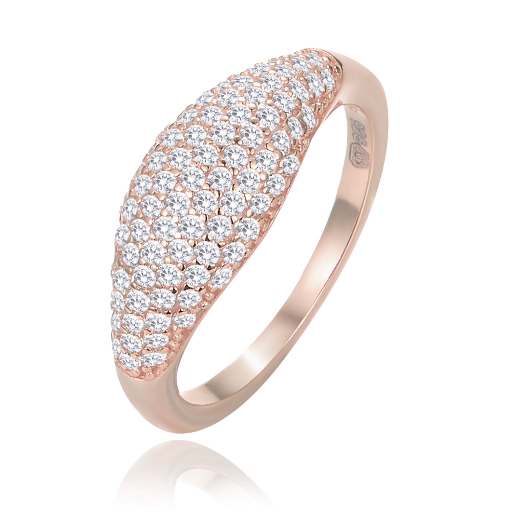 MINET 925/1000 Stříbrný Rosegold prsten kapka s bílými zirkony JMAN0565YR