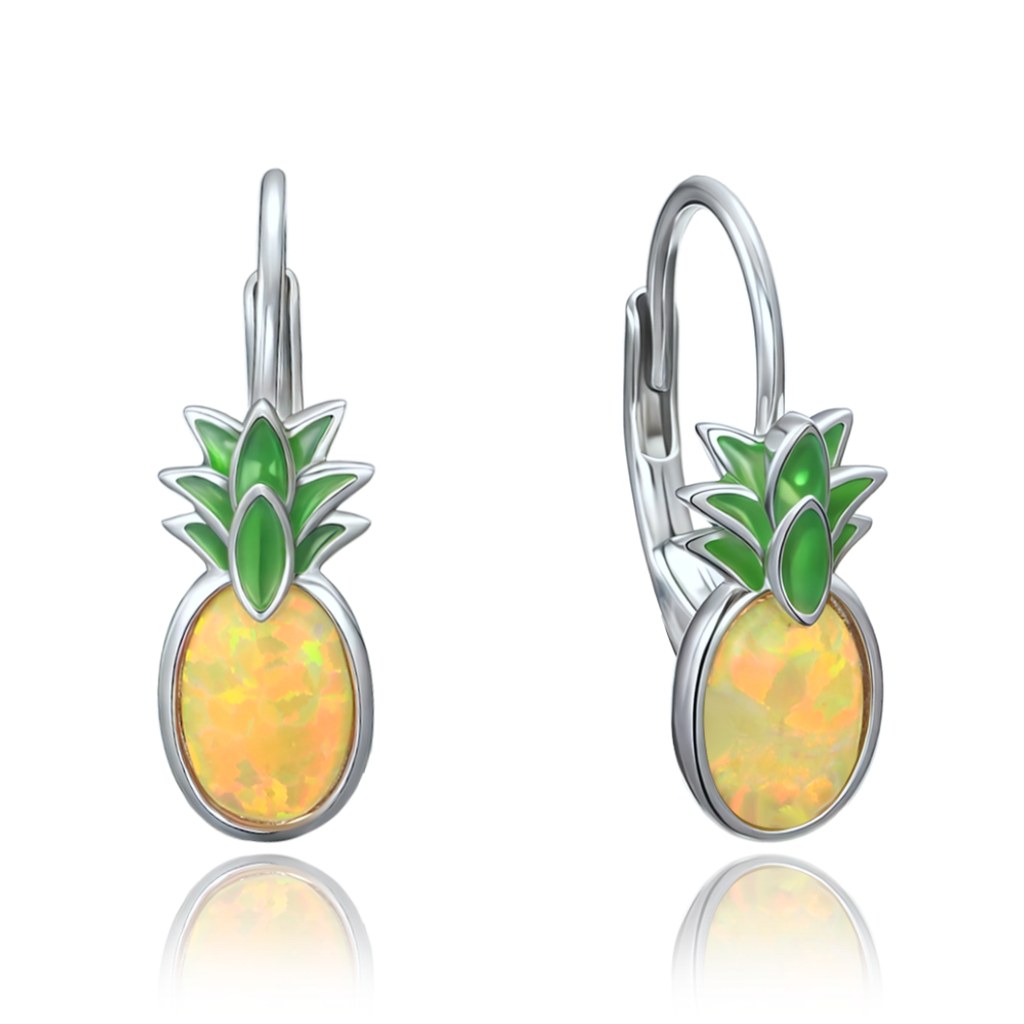 MINET Dětské stříbrné náušnice ananasy se žlutým opálem