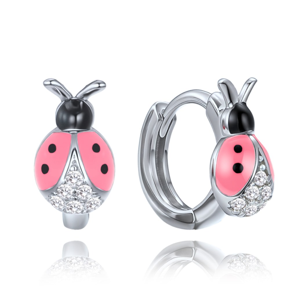 MINET Dětské stříbrné náušnice růžové berušky vykládané zirkony