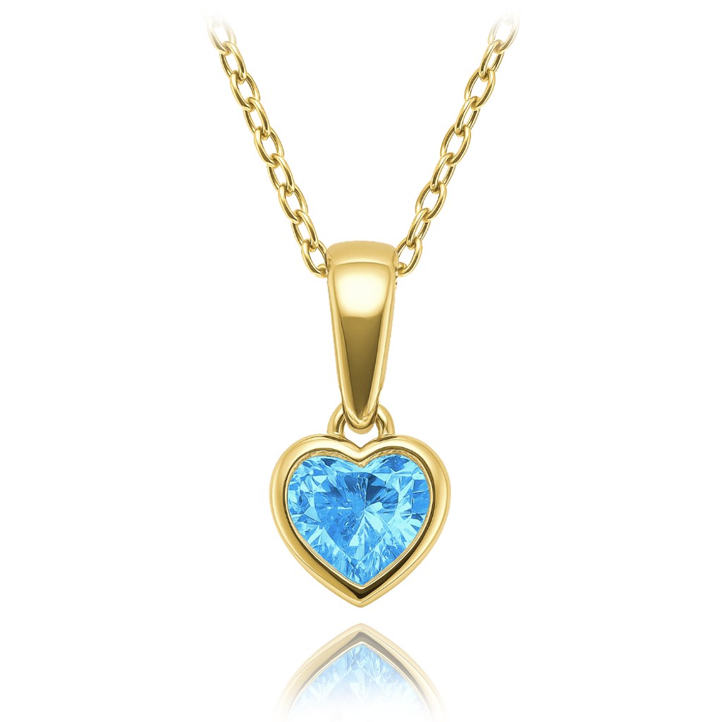 MINET Dětský zlatý náhrdelník srdíčko s modrým zirkonem Au 585/1000 1,85g