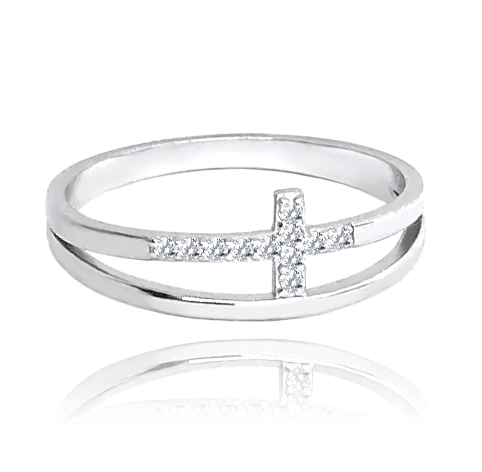 MINET Dvojitý stříbrný prsten KŘÍŽEK s bílými zirkony