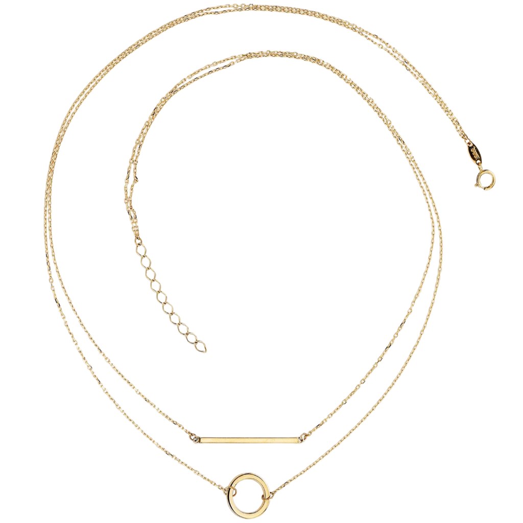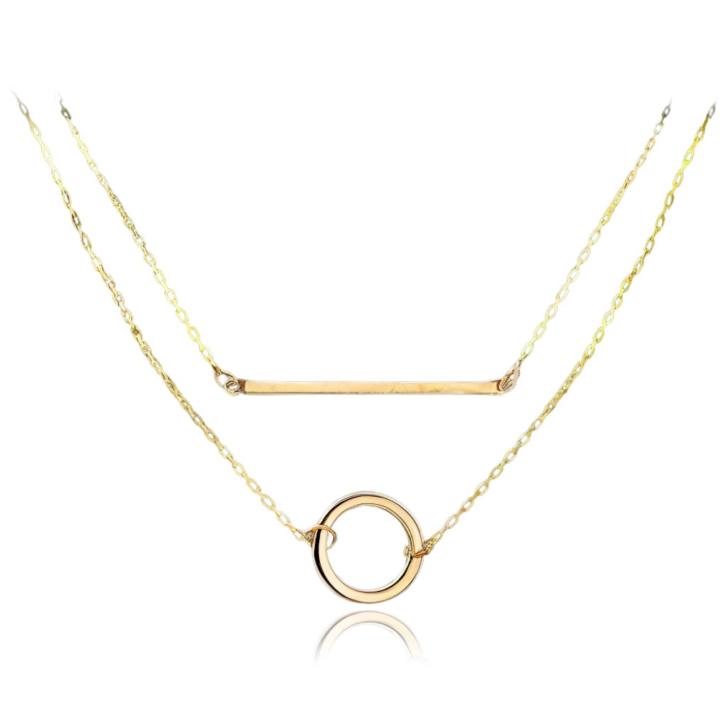 Elegantní dvojitý náhrdelník vyrobený z pravého 14-karátového zlata. Náhrdelník díky prodlužovacím očkům snadno přizpůsobíte dle potřeby.