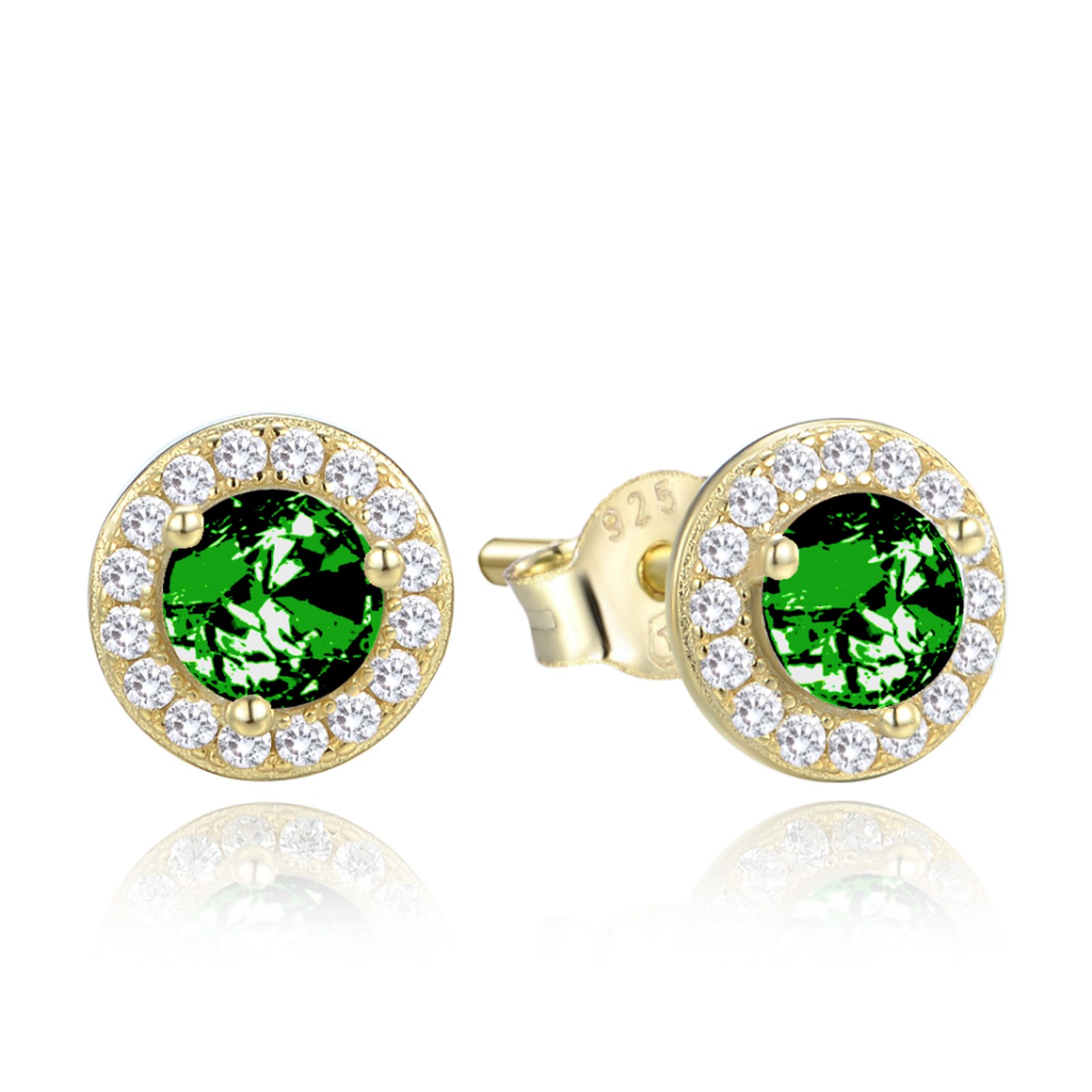 MINET Elegantní pozlacené stříbrné náušnice se zelenými zirkony