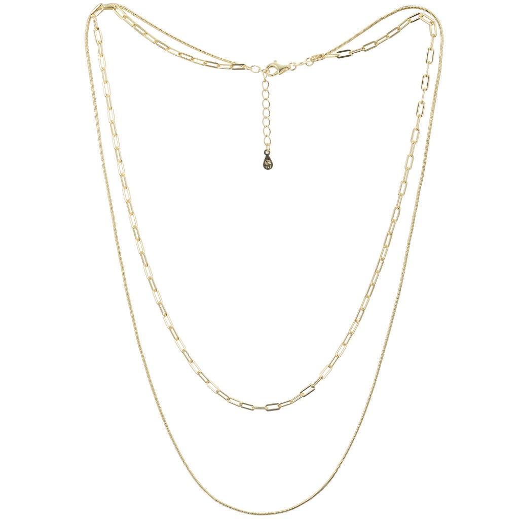 MINET Elegantní pozlacený dvojitý stříbrný náhrdelník